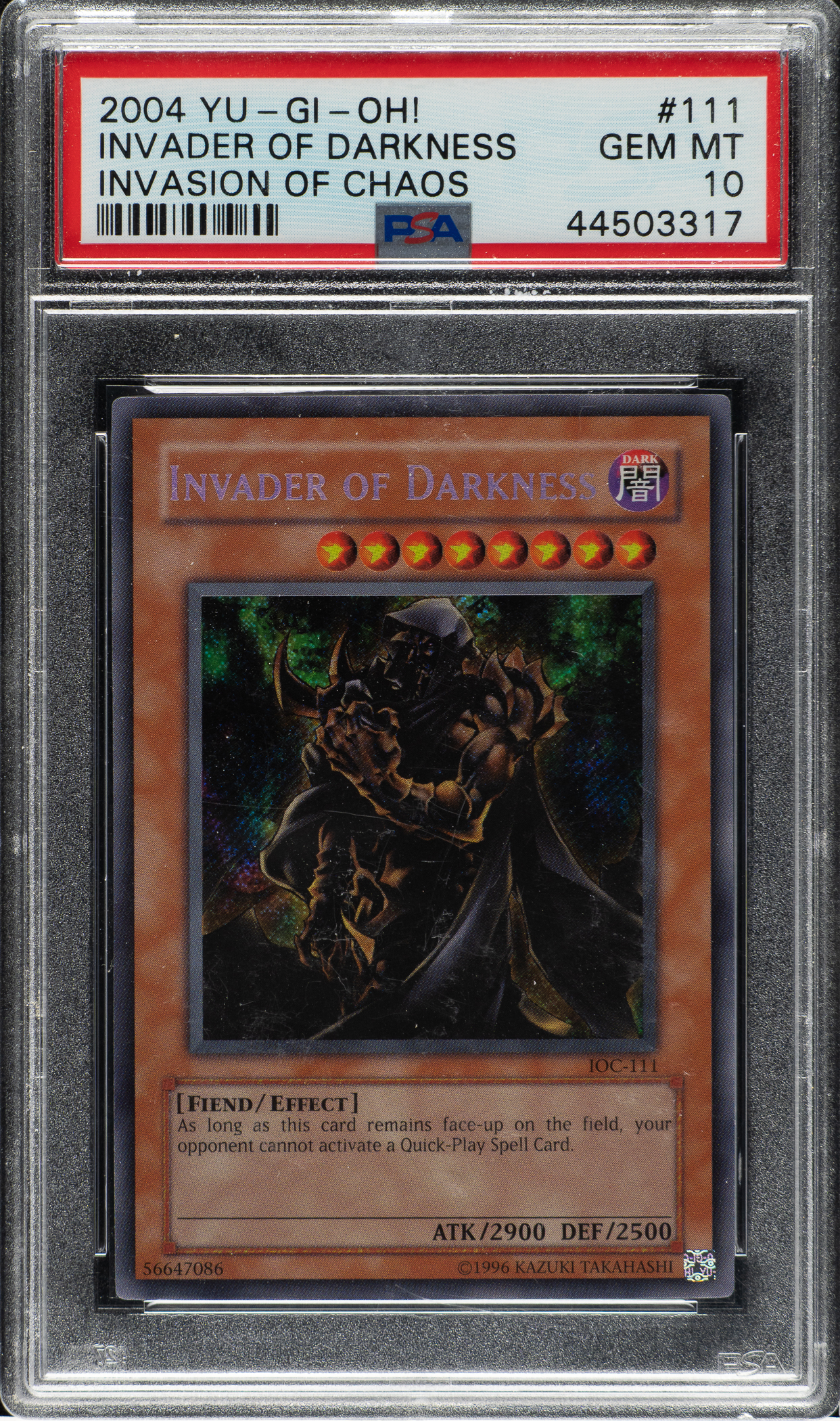 Lot # 3231: 2004 Yu-Gi-Oh! Invasion of Chaos #111 Invader of Chaos Secret Rare Holographic PSA GEM MINT 10