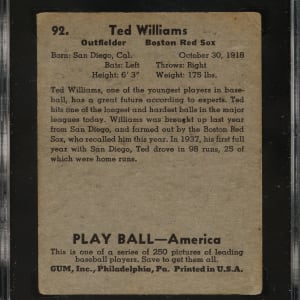 1939 R334 Play Ball #92 Ted Williams Rookie SGC VG 3