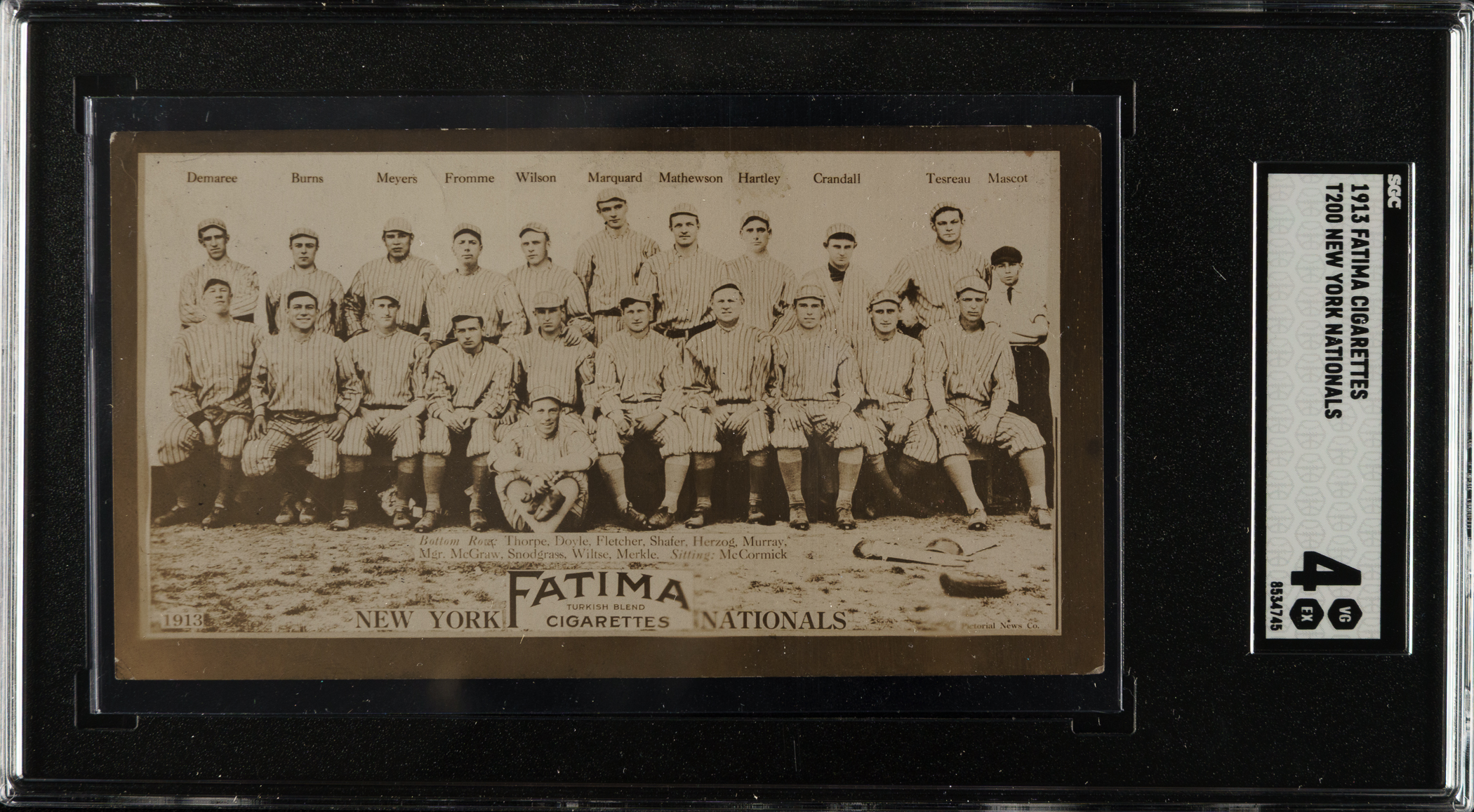 Graded VG/EX 4 by SGC. New York Giants team featuring Hall of Famers Christy Mathewson, Rube Marquard, and John McGraw, as well as Jim Thorpe.