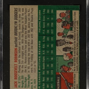 Graded VG/EX 4 by SGC. Brooklyn Dodgers Hall of Famer Jackie Robinson.