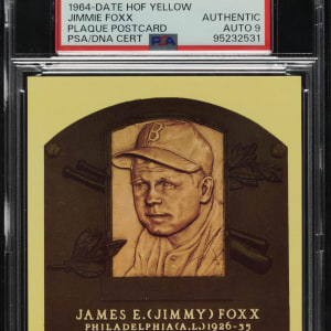 PSA/DNA has encapsulated the postcard, grading the signature MINT 9. Philadelphia Athletics Hall of Famer Jimmie Foxx.