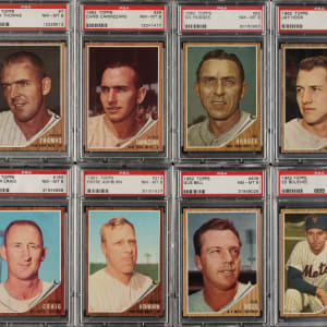Collection of eight 1962 Topps New York Mets cards, featuring New York Mets Hall of Famers Gil Hodges and Richie Ashburn. Each card has been graded and encapsulated NM-MT 8 by PSA. This collection consists of the following: #7, 26, 85 Hodges, 94, 183, 213 Ashburn, 408, and 497. Total: 8 cards.
