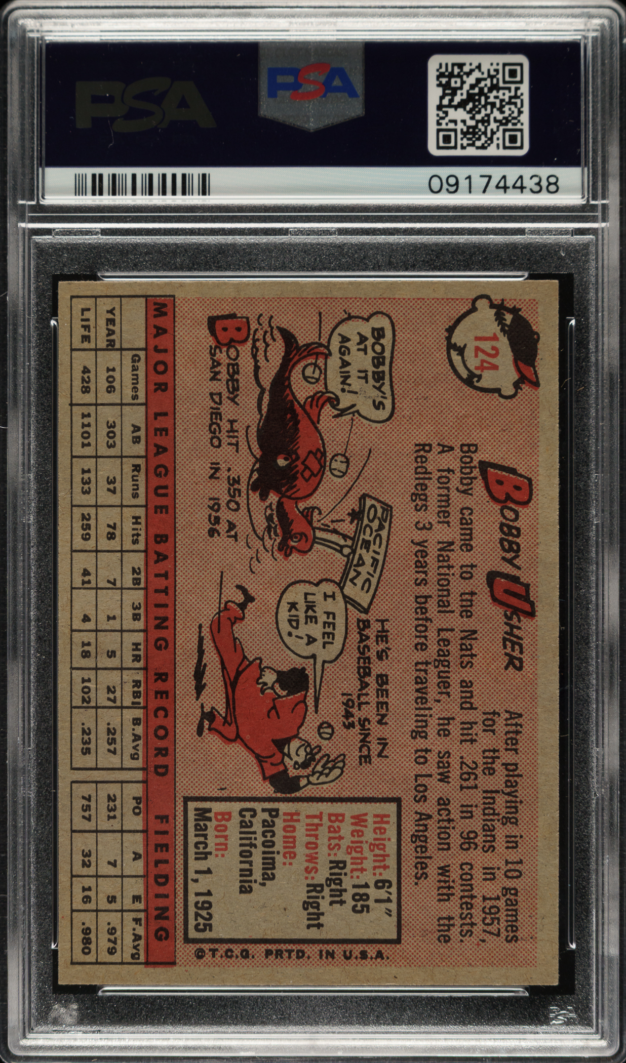 1958 Topps #124 Bobby Usher PSA MINT 9