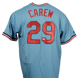 Minnesota Twins Hall of Famer Rod Carew signed jersey. PSA/DNA certification sticker is affixed to the jersey.