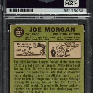 PSA/DNA has encapsulated the card, grading the signature Authentic. Houston Astros Hall of Famer Joe Morgan.