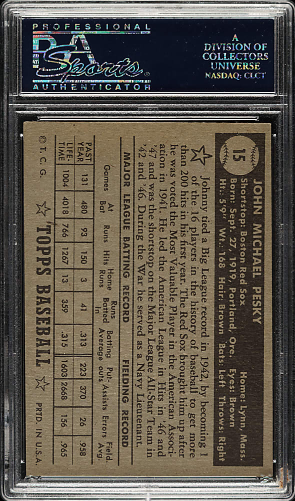 1952 Topps #15 Johnny Pesky Black Back PSA EX 5