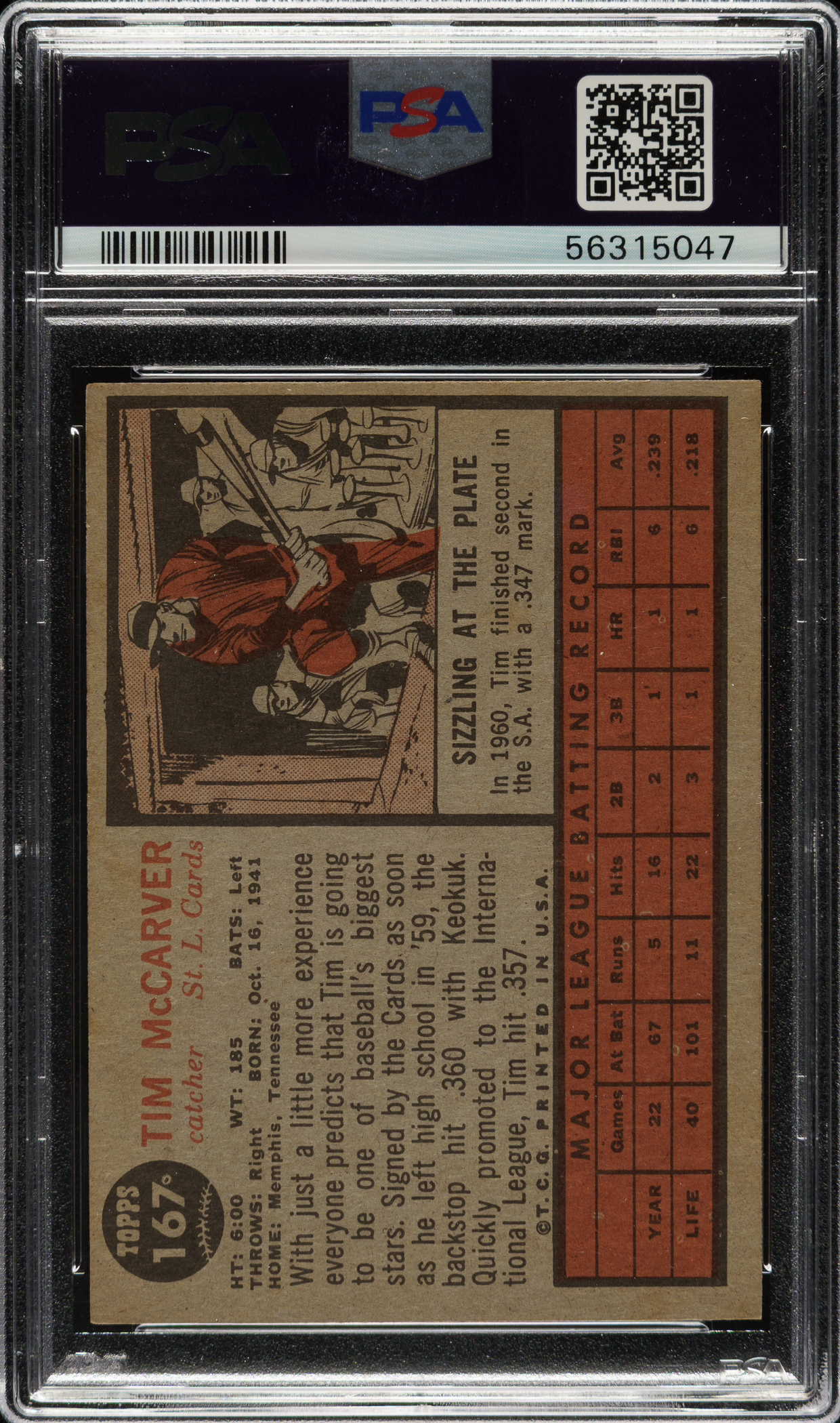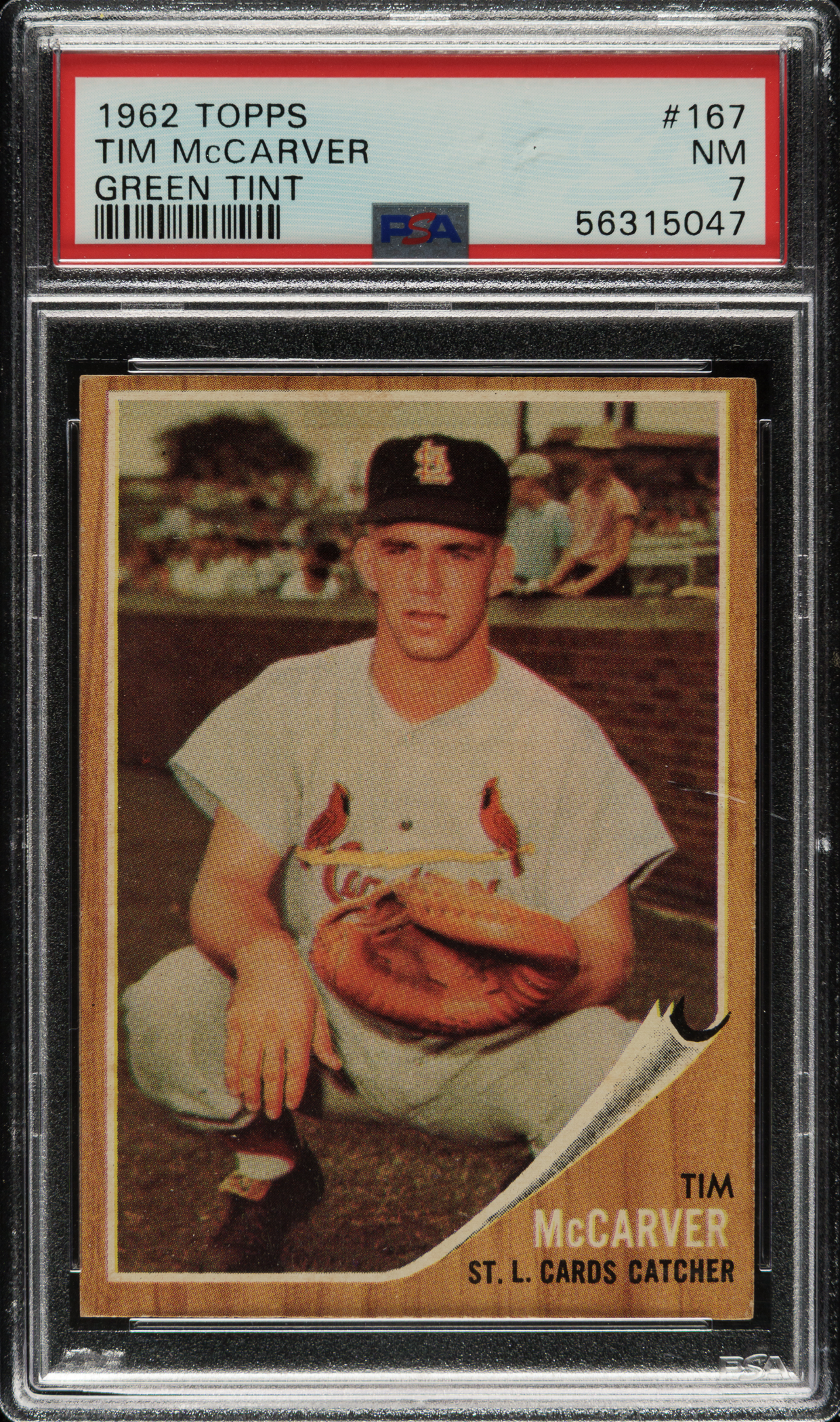 1962 Topps #167 Tim McCarver Rookie Green Tint PSA NM 7