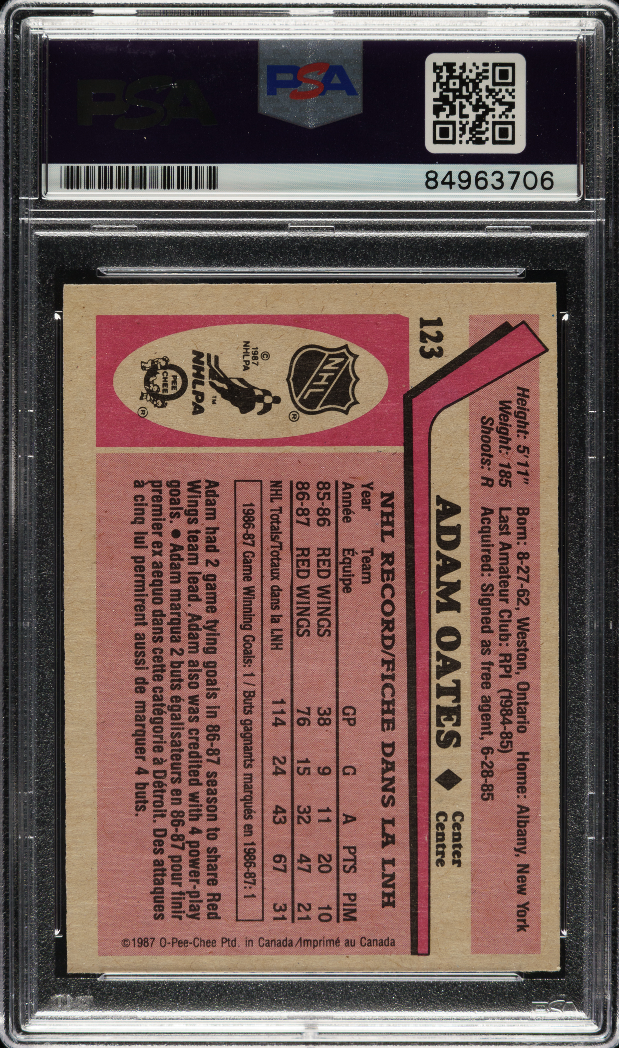 PSA/DNA has encapsulated the card, grading the signature GEM MINT 10. Detroit Red Wings Hall of Famer Adam Oates.