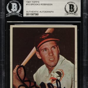 Beckett has encapsulated the card, grading the signature Authentic. Baltimore Orioles Hall of Famer Brooks Robinson.