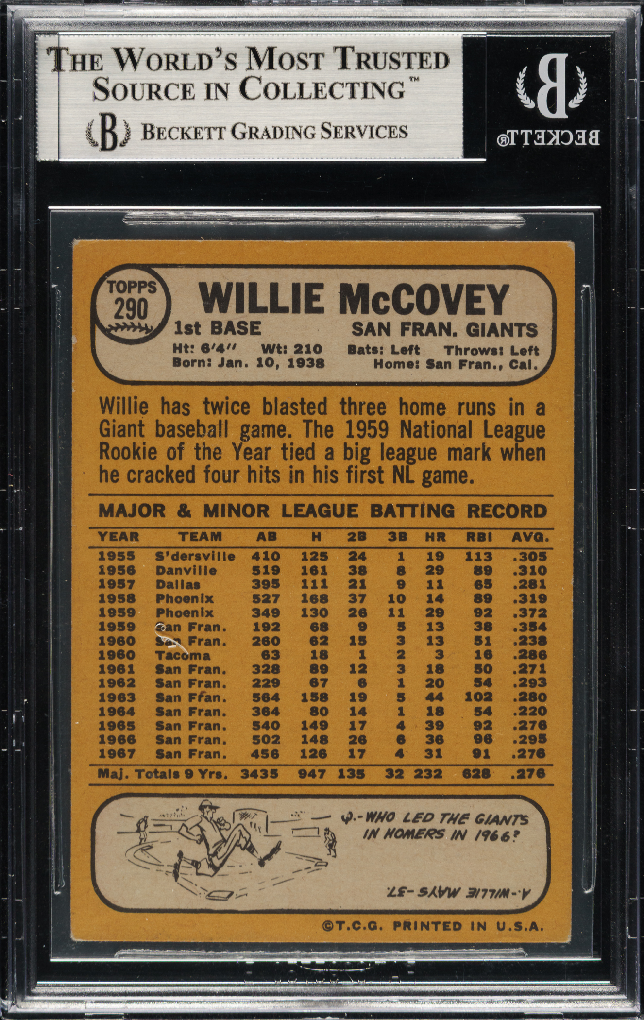 Beckett has encapsulated the card, grading the signature Authentic. San Francisco Giants Hall of Famer Willie McCovey.