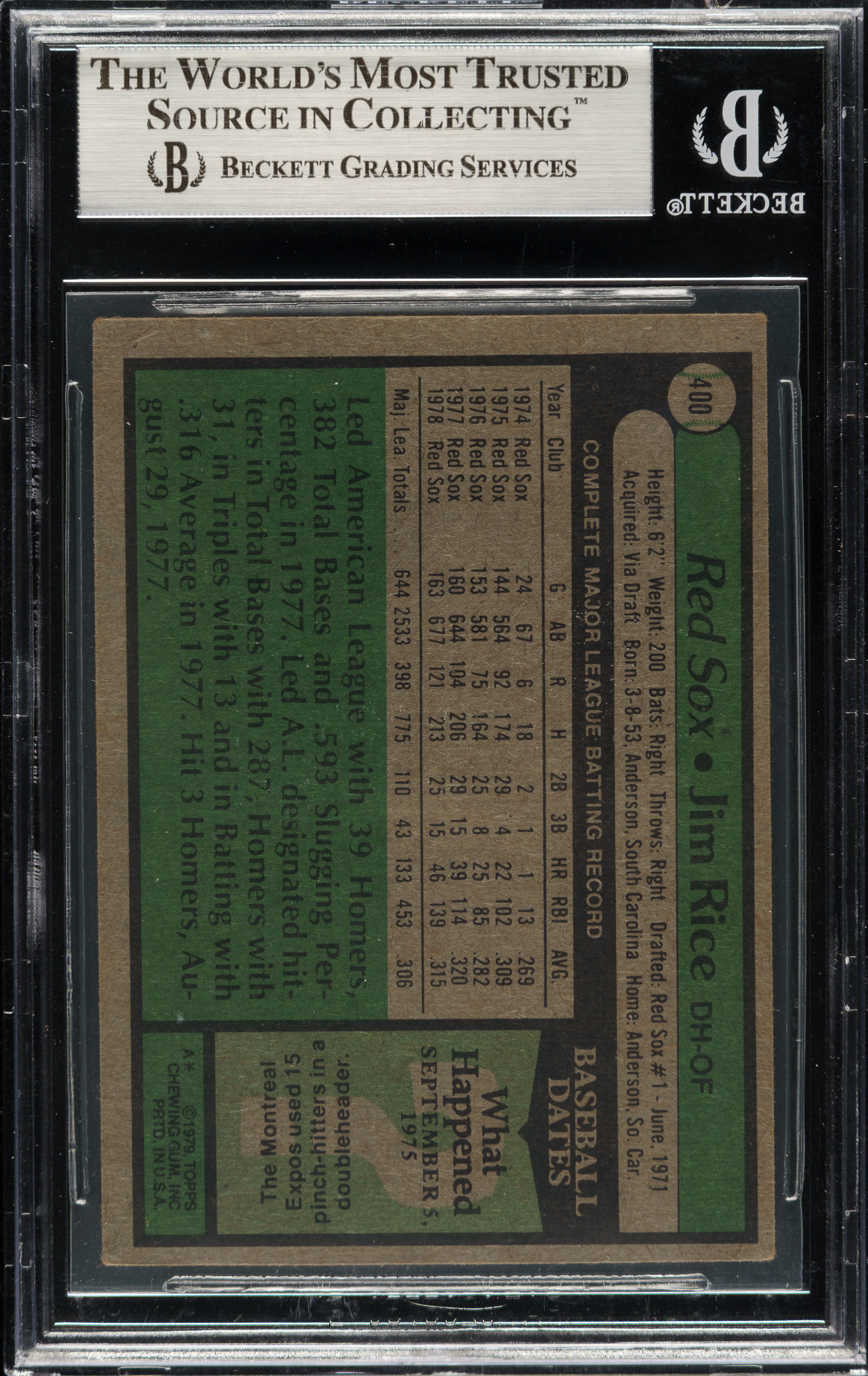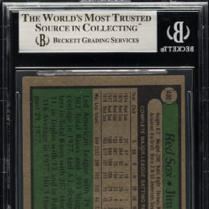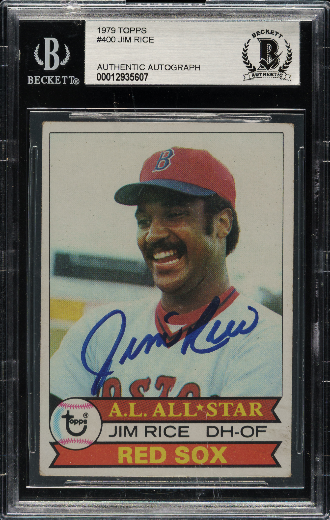 Beckett has encapsulated the card, grading the signature Authentic. Boston Red Sox Hall of Famer Jim Rice.