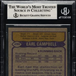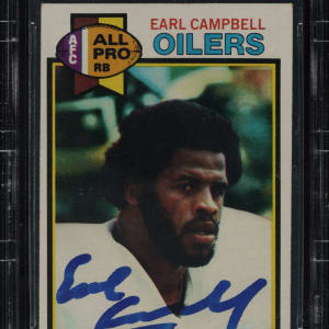 Beckett has encapsulated the card and certified the signature as Authentic. Houston Oilers Hall of Famer Earl Campbell.