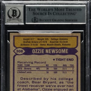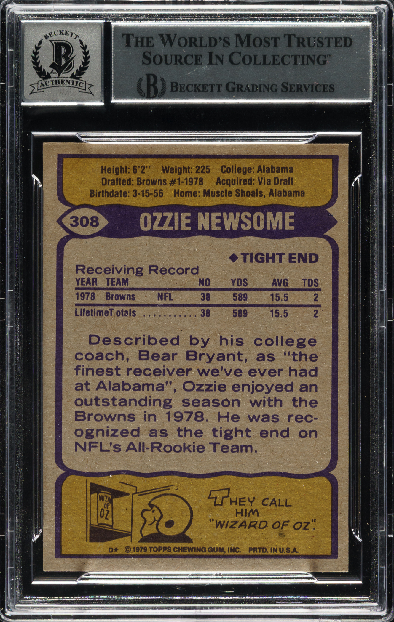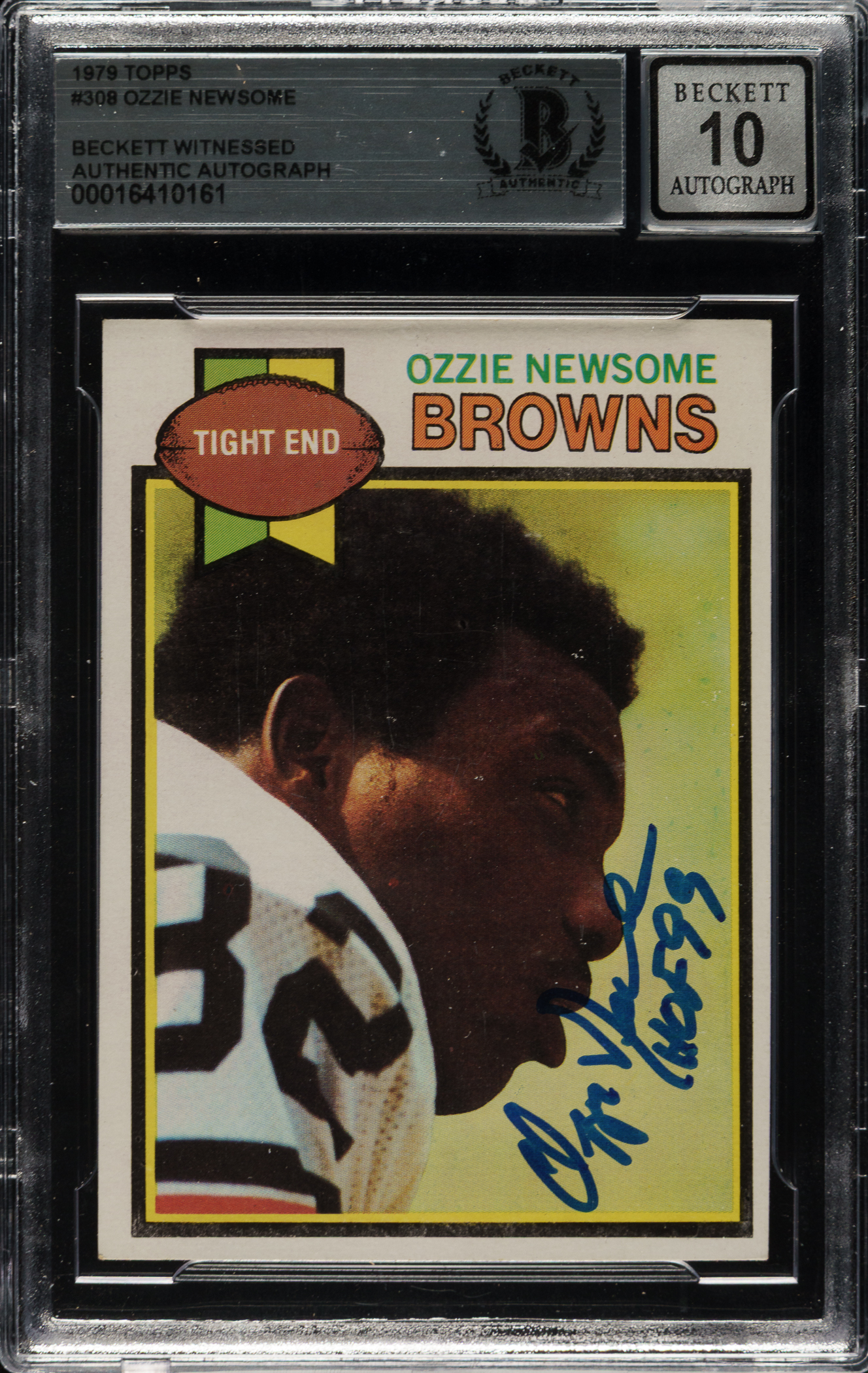 Beckett has encapsulated the card and certified the signature as GEM MINT 10. Cleveland Browns Hall of Famer Ozzie Newsome.