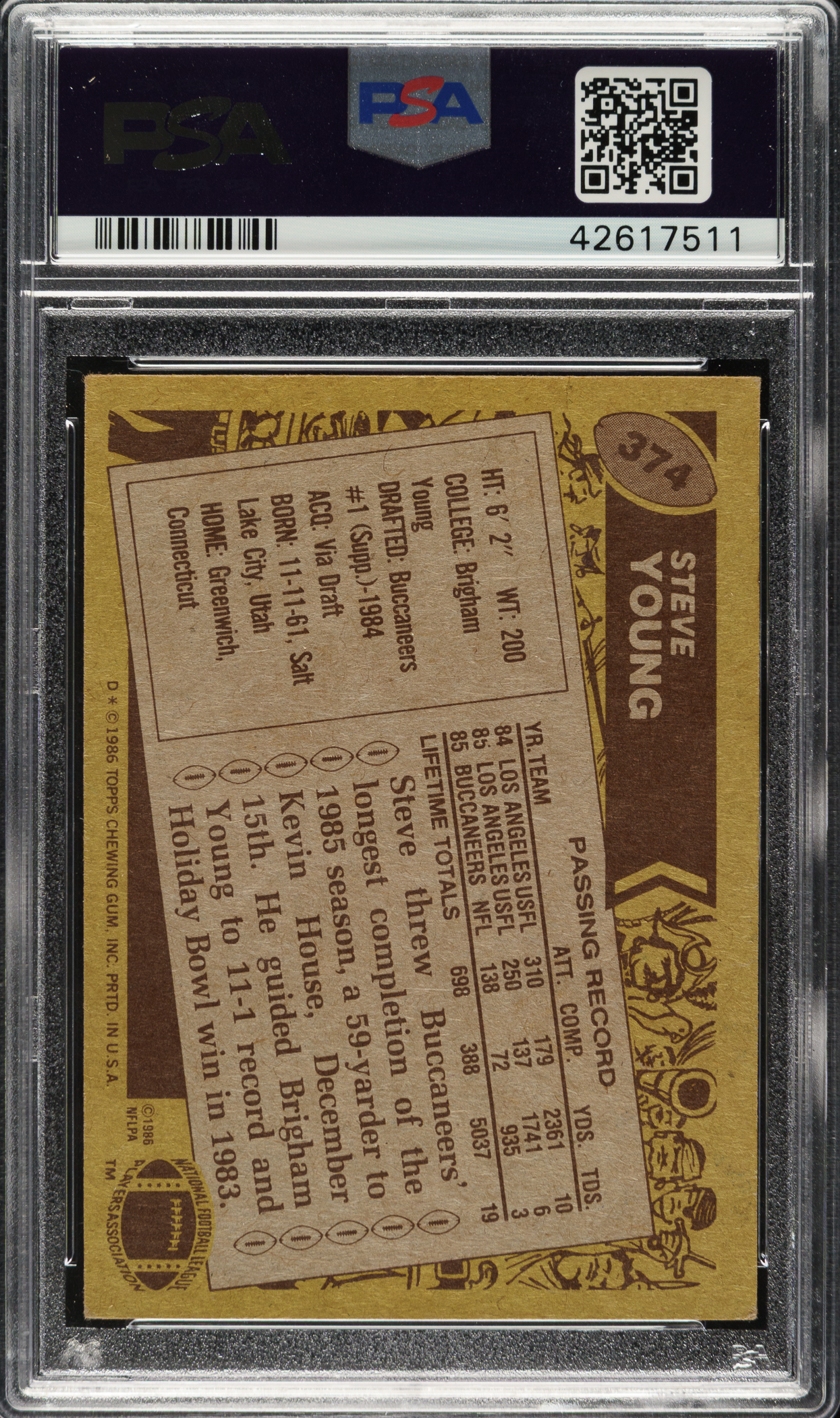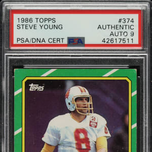 PSA/DNA has encapsulated the card, grading the signature MINT 9 and certifying the card as "Authentic." Tampa Bay Buccaneers Hall of Famer Steve Young.