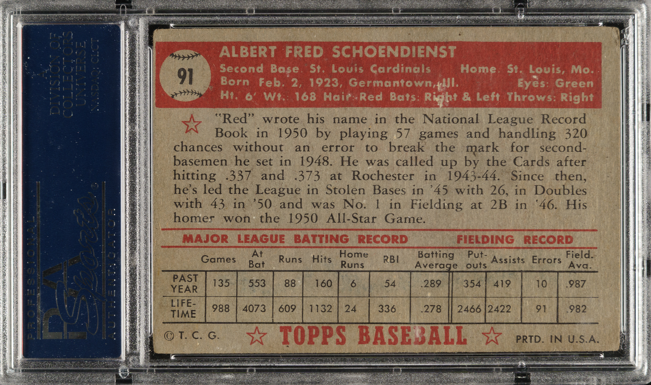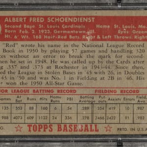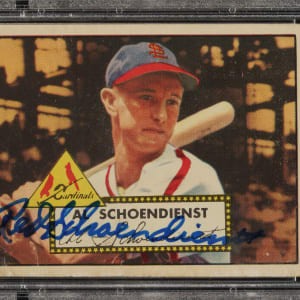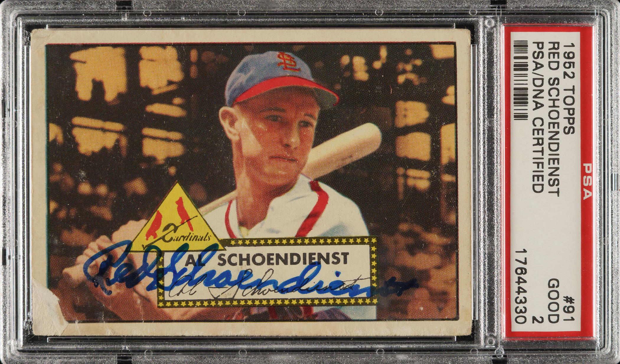 PSA/DNA has encapsulated the card, grading the card GOOD 2 and certified the signature as "Authentic." St. Louis Cardinals Hall of Famer Red Schoendiest.