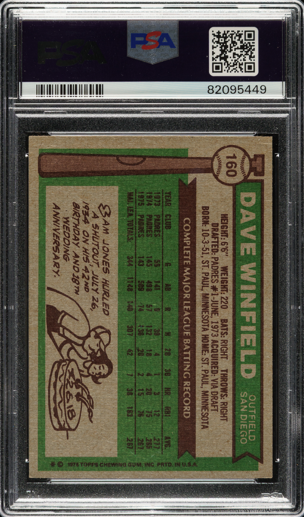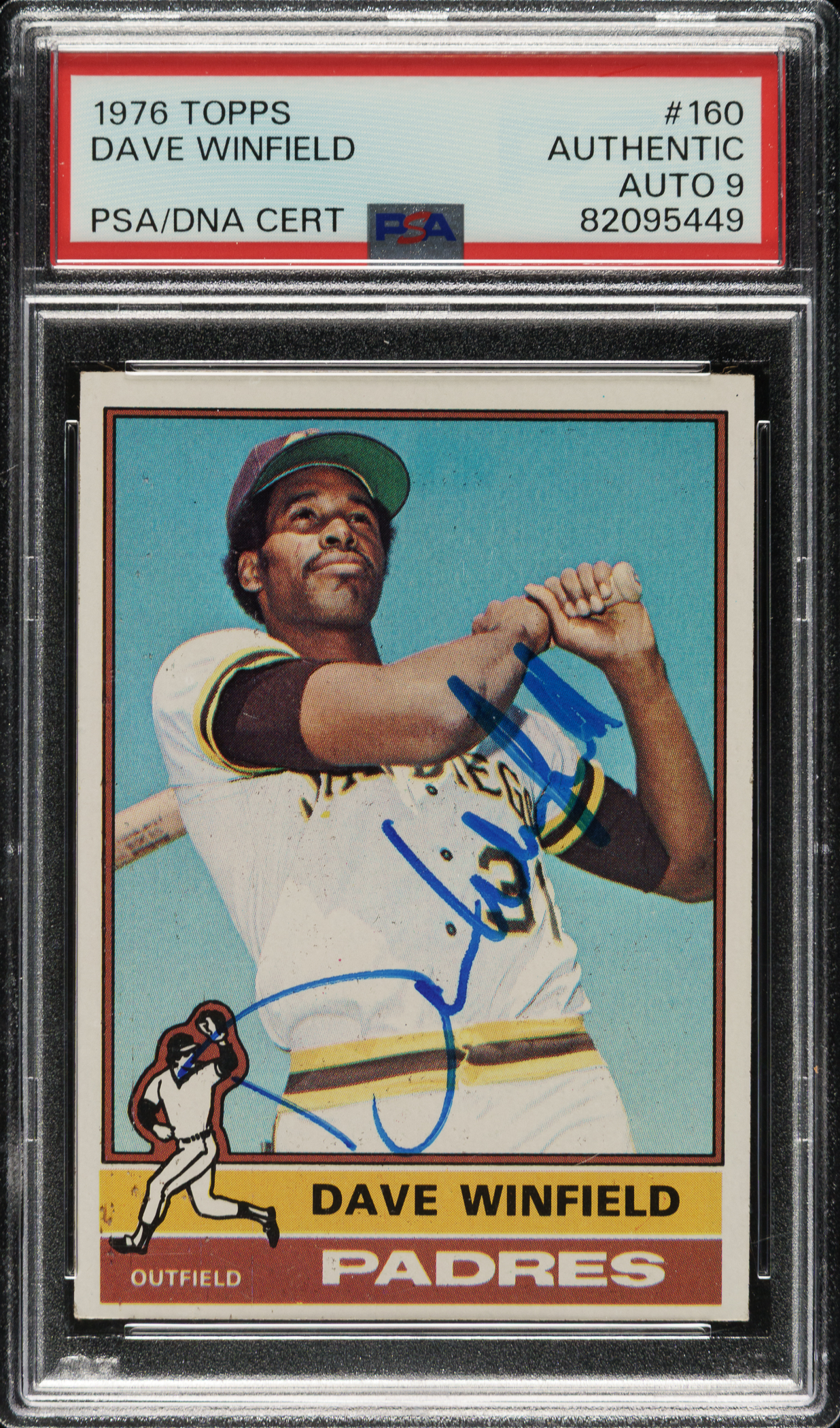 PSA/DNA has encapsulated the card, grading the signature as MINT 9 and certified the card as "Authentic." San Diego Padres Hall of Famer Dave Winfield