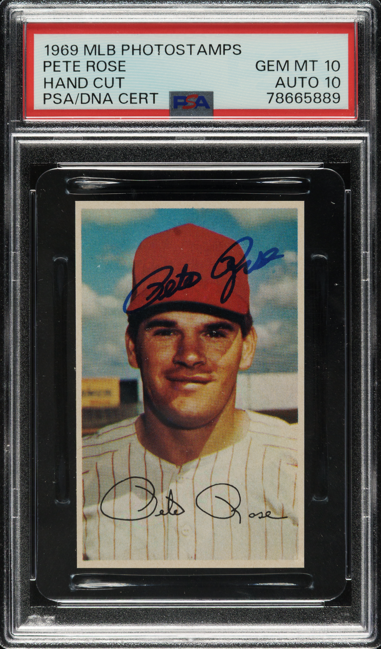 Signed 1969 MLB Photostamps Pete Rose PSA GEM MINT 10 with GEM MINT 10 Signature