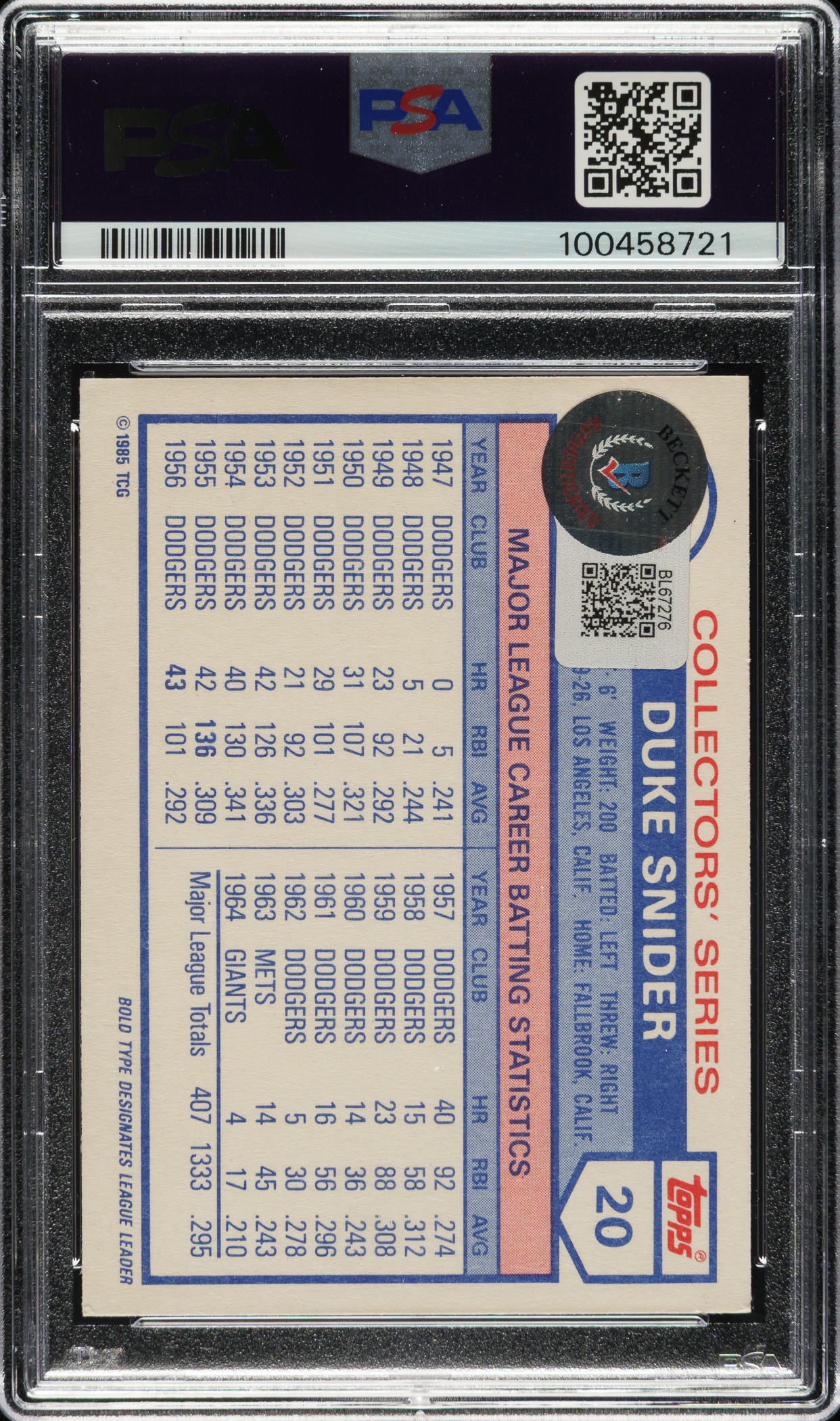 PSA/DNA has graded the signature GEM MINT 10 and the card EX-MT 6. Brooklyn Dodgers Hall of Famer Duke Snider.