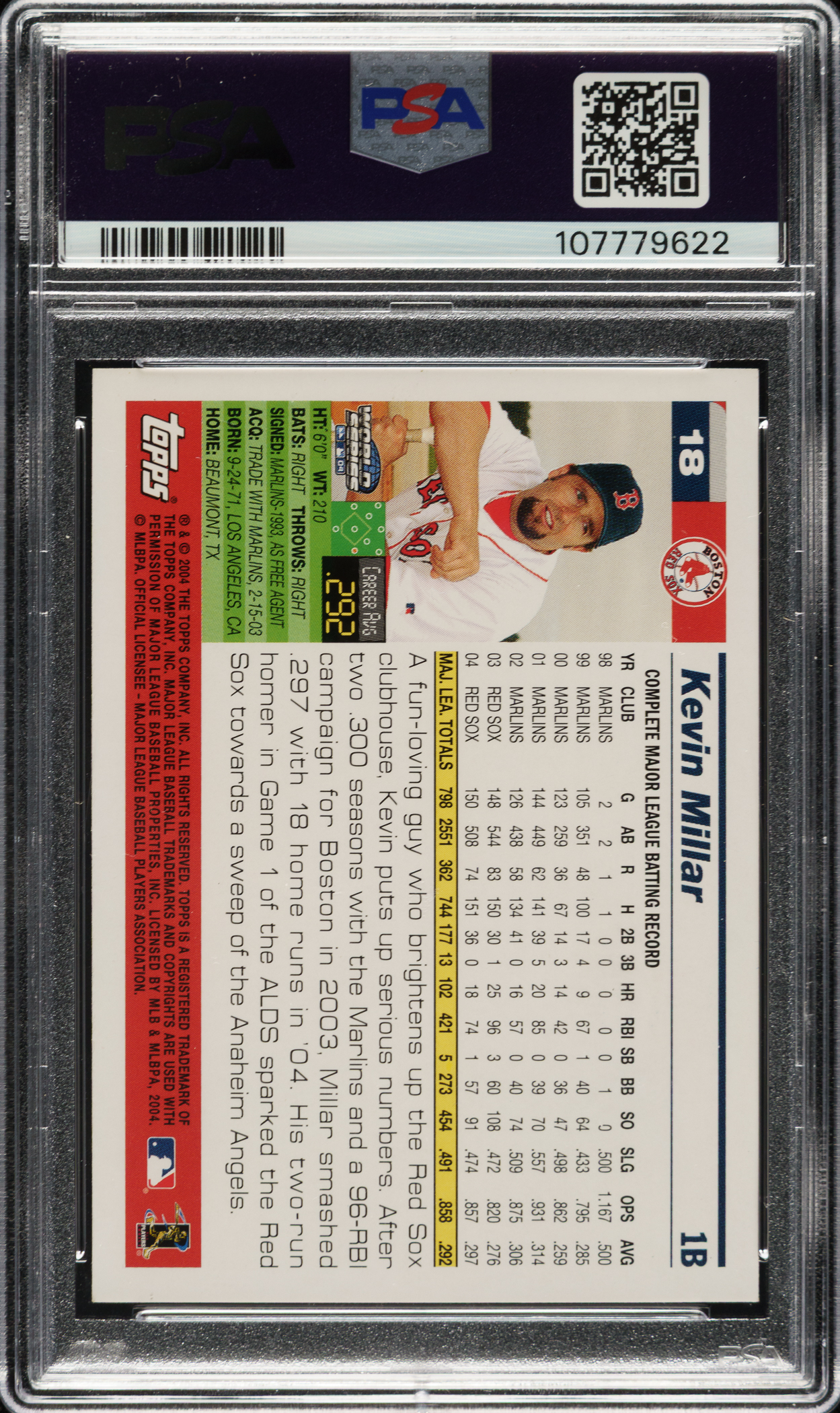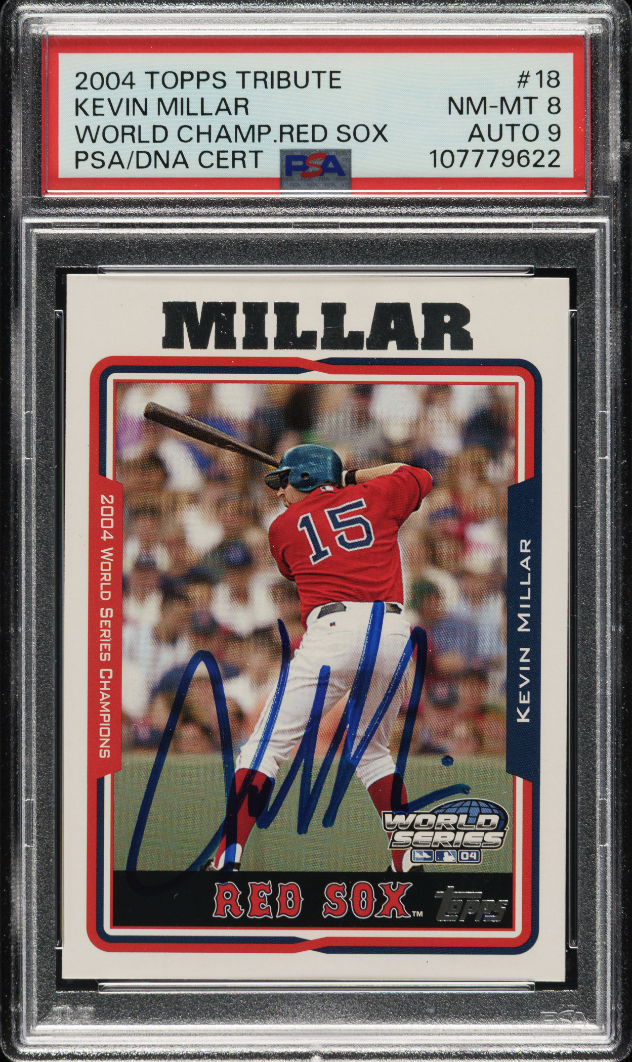 Signed 2004 Topps Tribute World Champions #18 Kevin Millar PSA NM-MT 8 with MINT 9 Signature