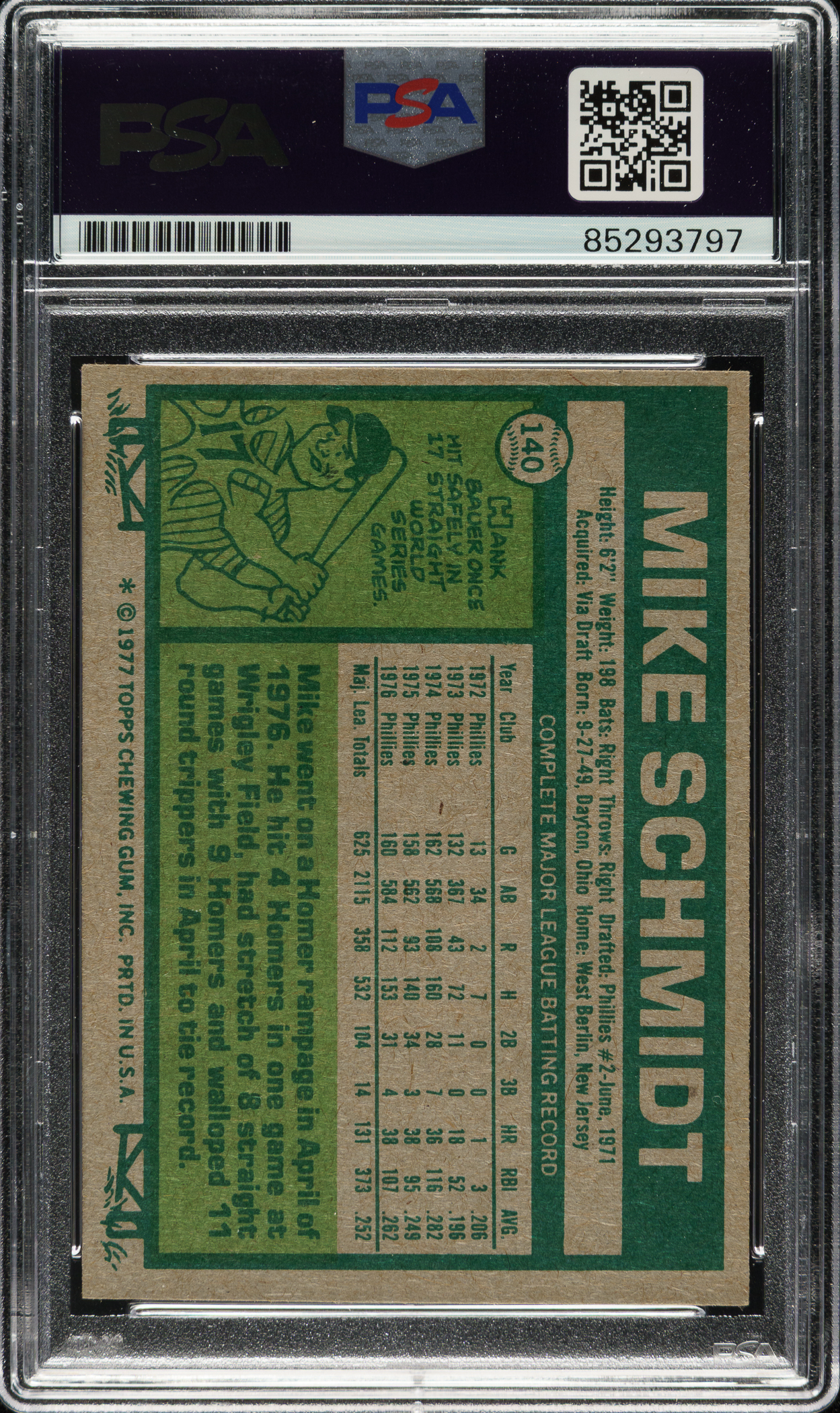 Signed 1977 Topps #140 Mike Schmidt - PSA/DNA