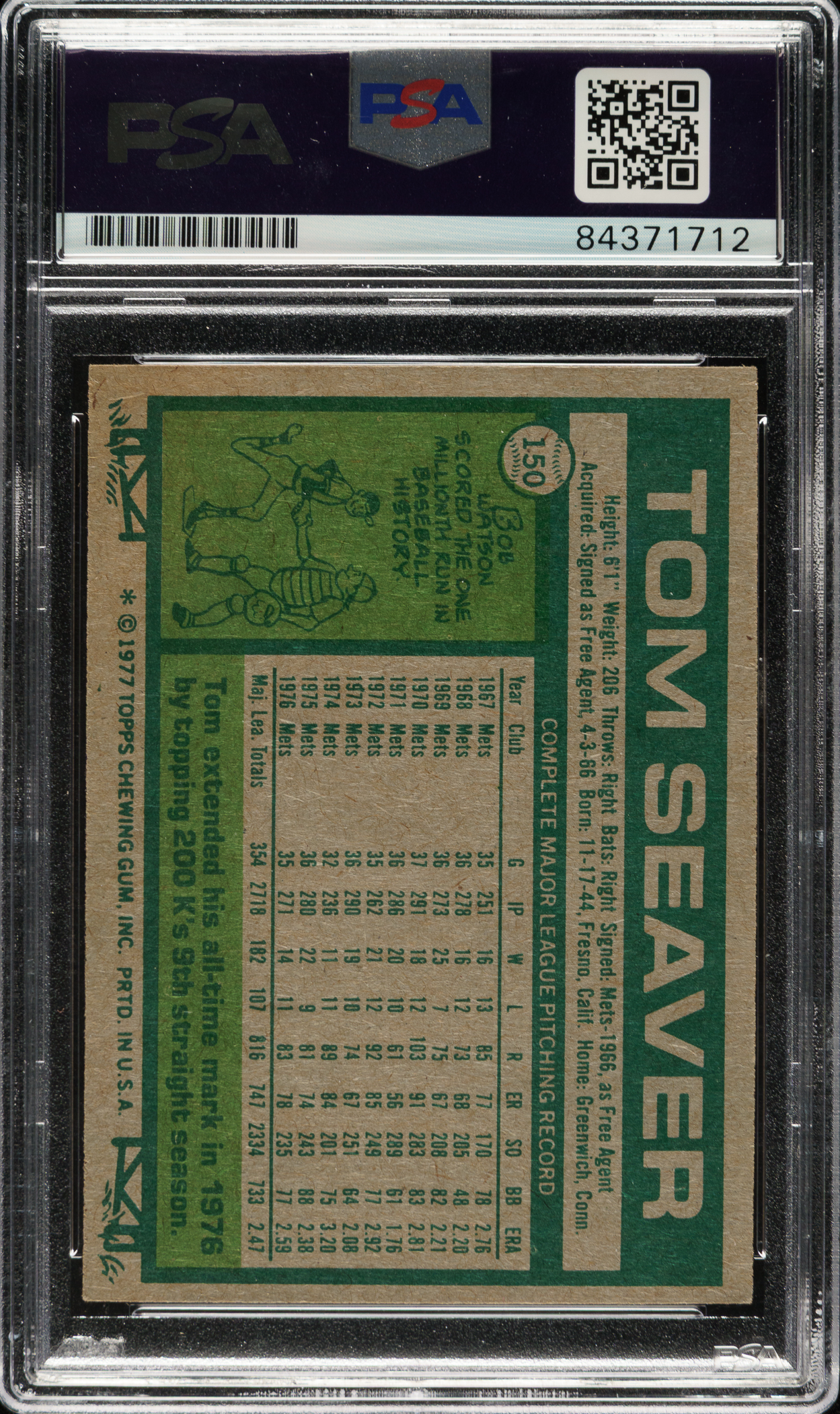 PSA/DNA has encapsulated the card and certified the signature as "Authentic." New York Mets Hall of Famer Tom Seaver.