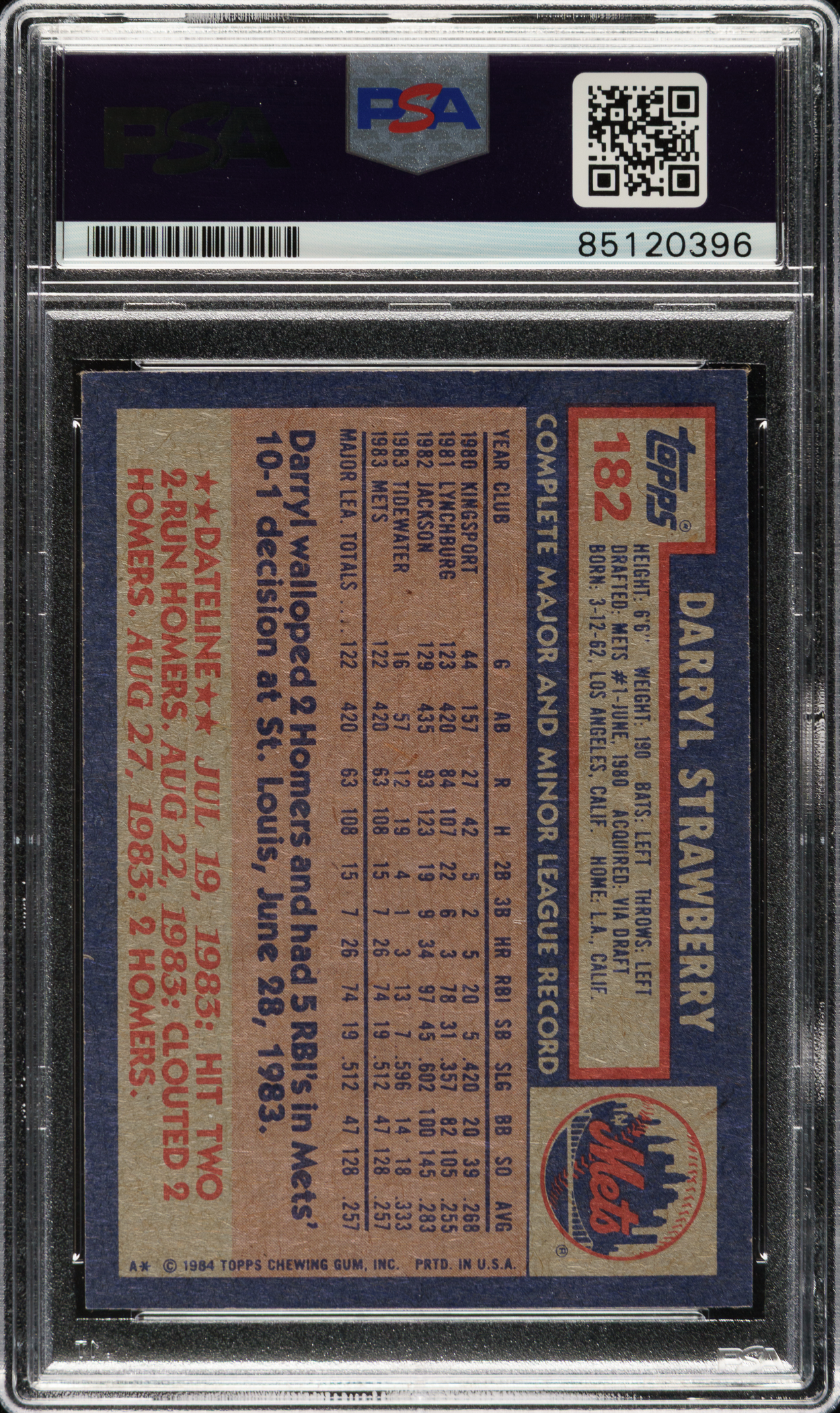 Signed 1984 Topps #182 Darryl Strawberry Rookie - PSA/DNA