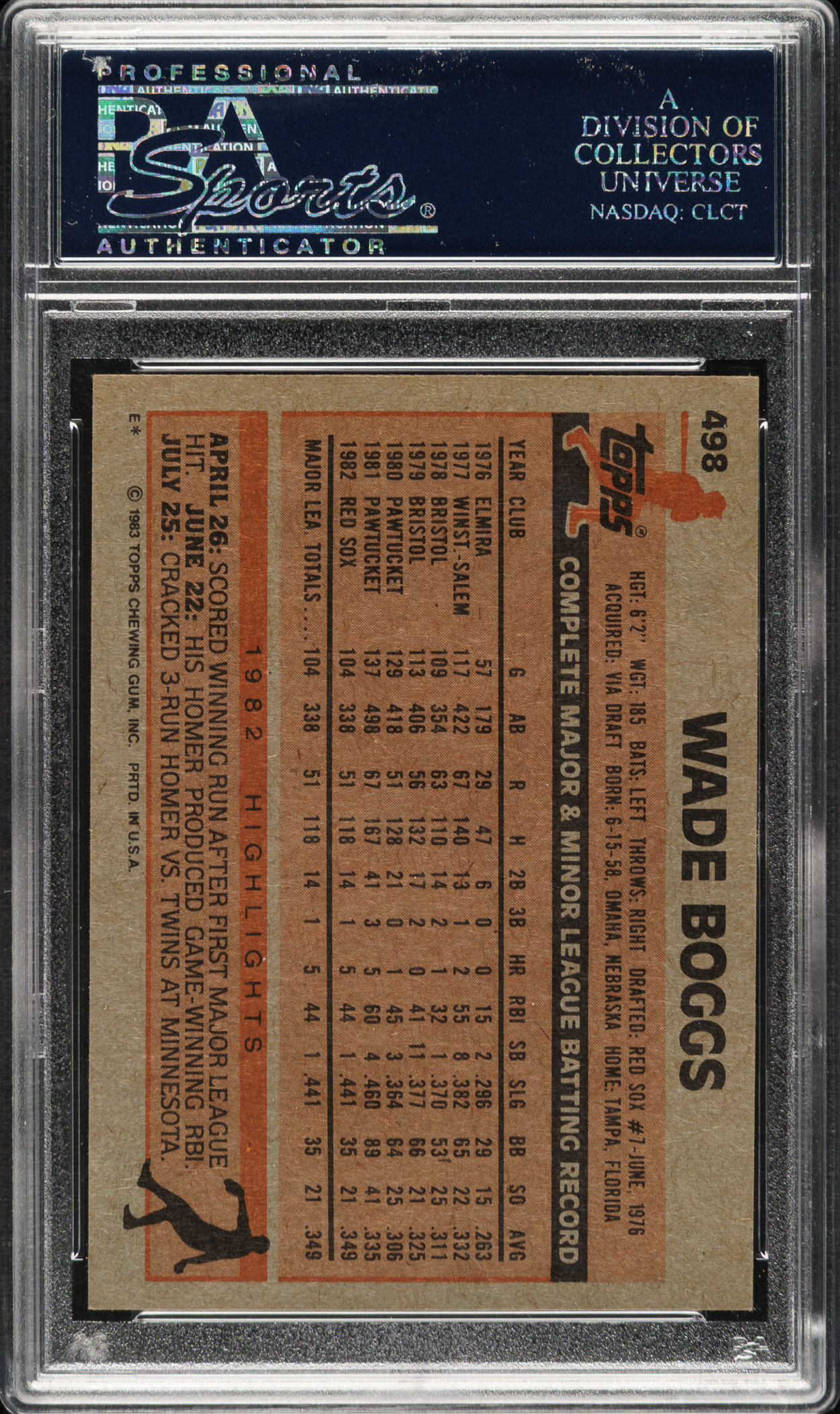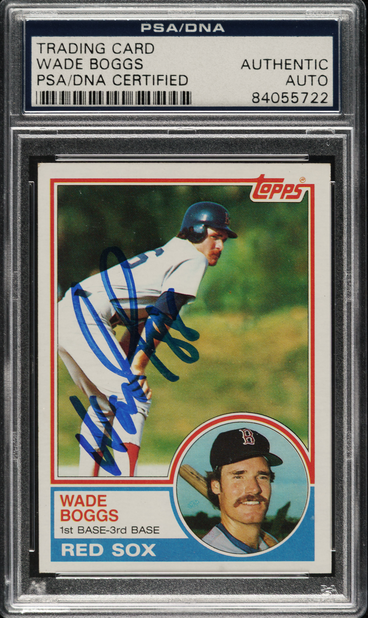PSA/DNA has encapsulated the card and certified the signature as "Authentic." Boston Red Sox Hall of Famer Wade Boggs.