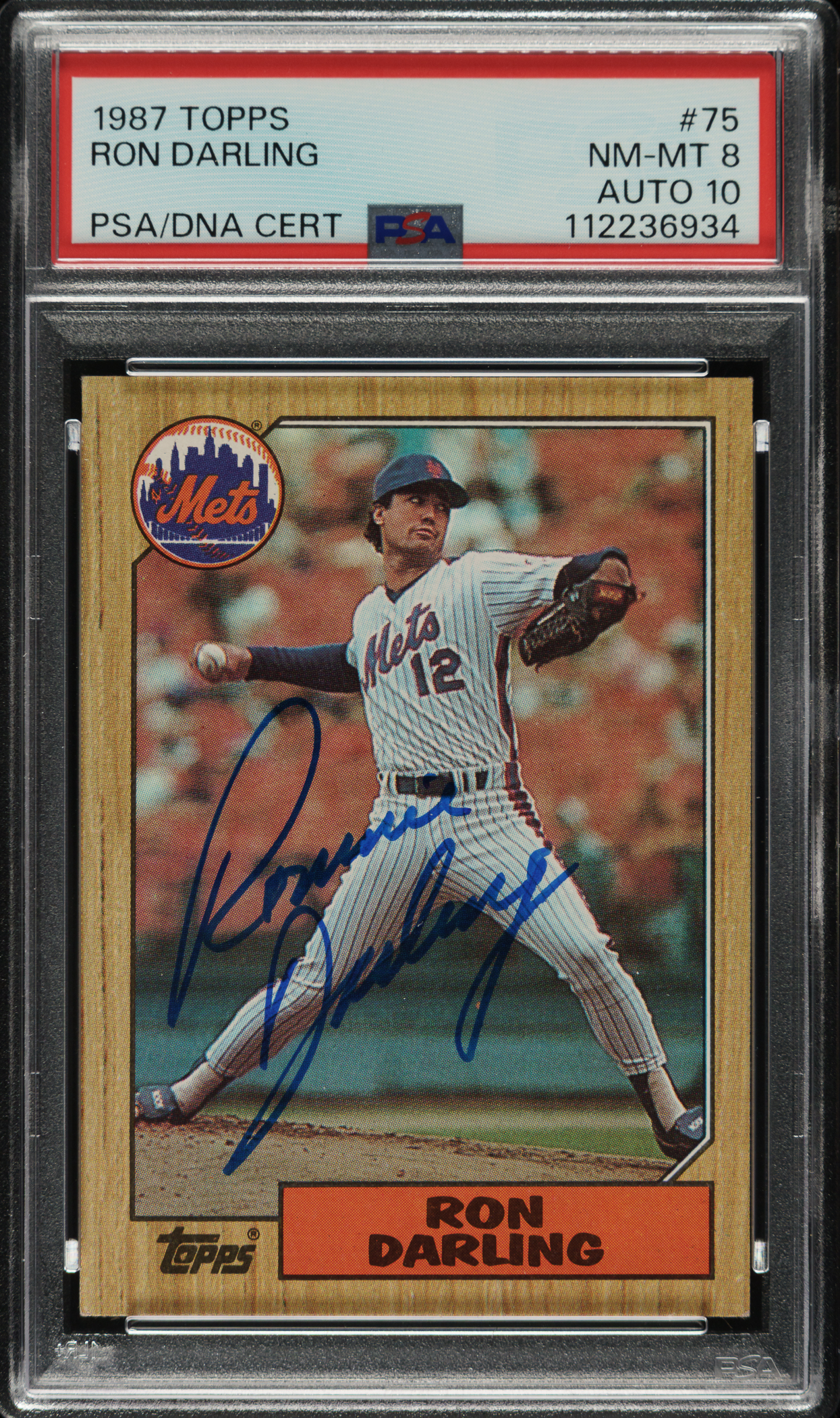 PSA/DNA has encapsulated the card, grading the signature GEM MINT 10 and the card NM-MT 8. New York Mets.