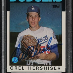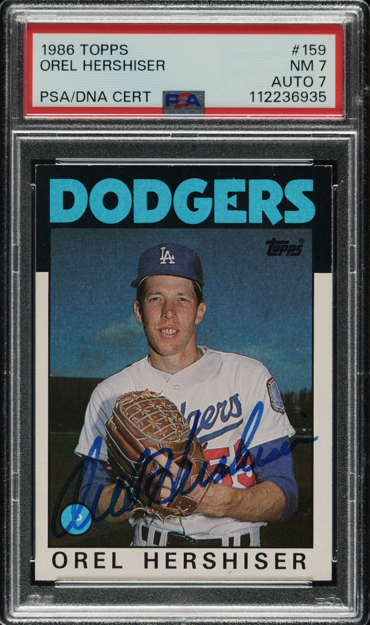 PSA/DNA has encapsulated the card, grading the signature NM 7 and the card NM 7. Los Angeles Dodgers.