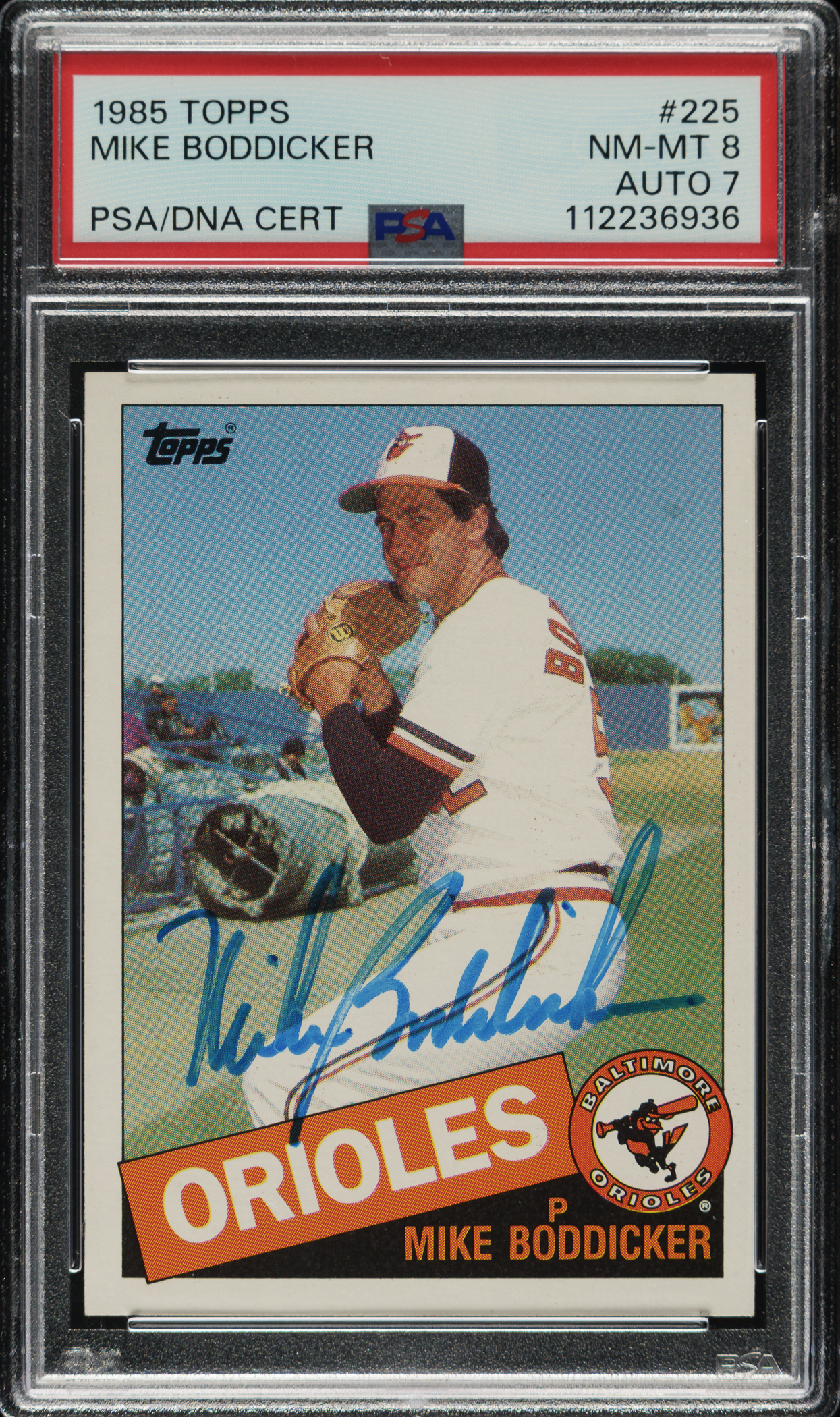 PSA/DNA has encapsulated the card, grading the signature NM 7 and the card NM-MT 8. Baltimore Orioles.