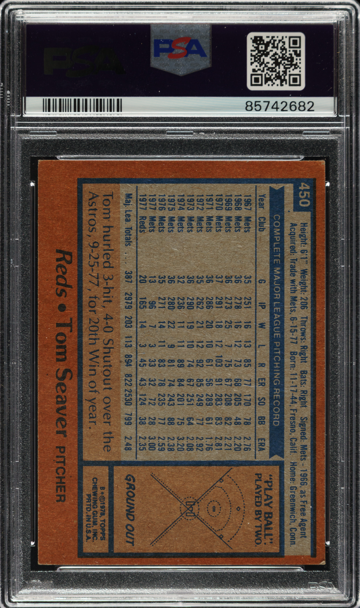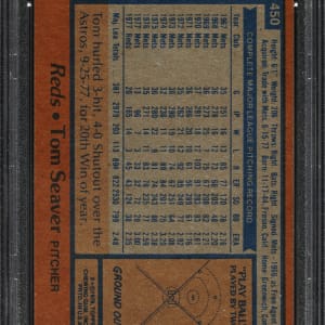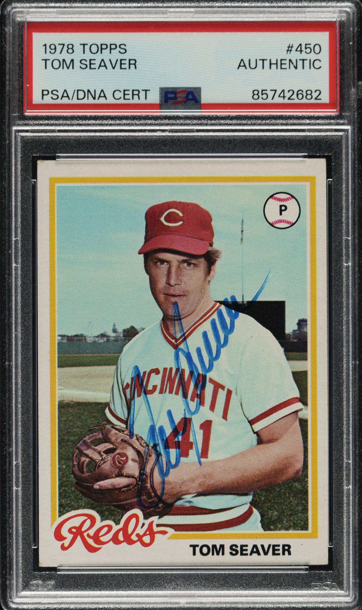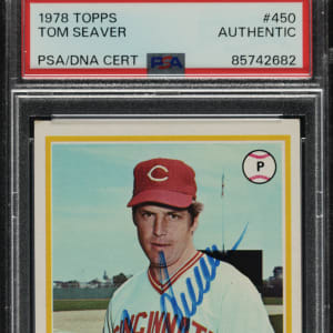 PSA/DNA has encapsulated the card, grading the signature Authentic. Cincinnati Reds Hall of Famer Tom Seaver.