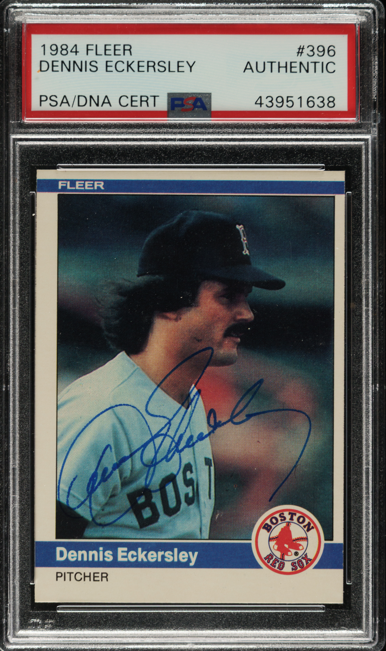 PSA/DNA has encapsulated the card, grading the signature Authentic. Boston Red Sox Hall of Famer Dennis Eckersley.