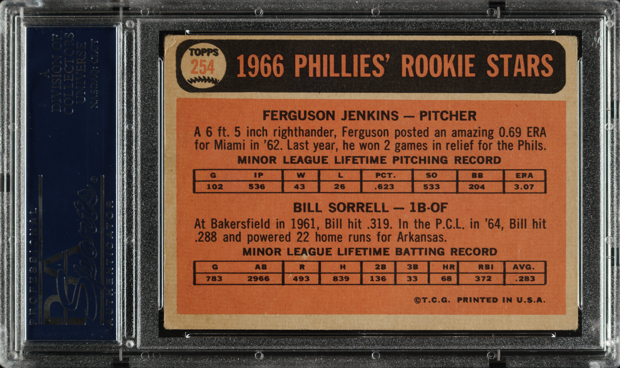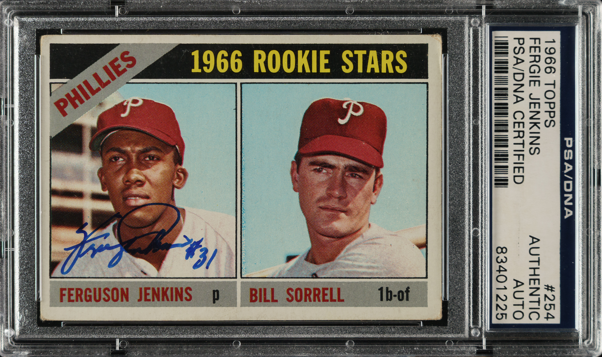 PSA/DNA has encapsulated the card, grading the signature Authentic. Philadelphia Phillies Hall of Famer Ferguson Jenkins.