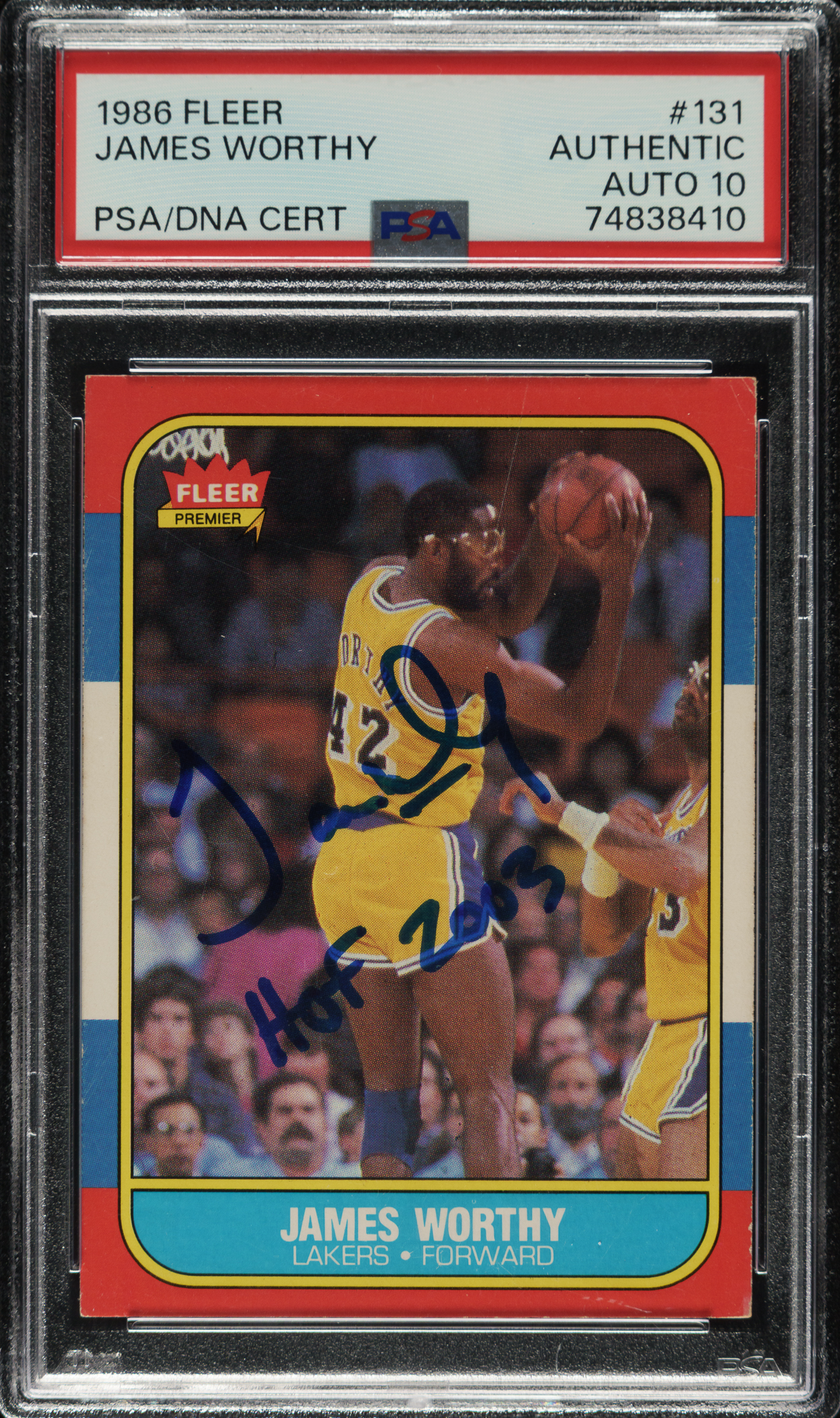 PSA/DNA has encapsulated the card, grading the signature GEM MINT 10. Los Angeles Lakers basketball Hall of Famer James Worthy.