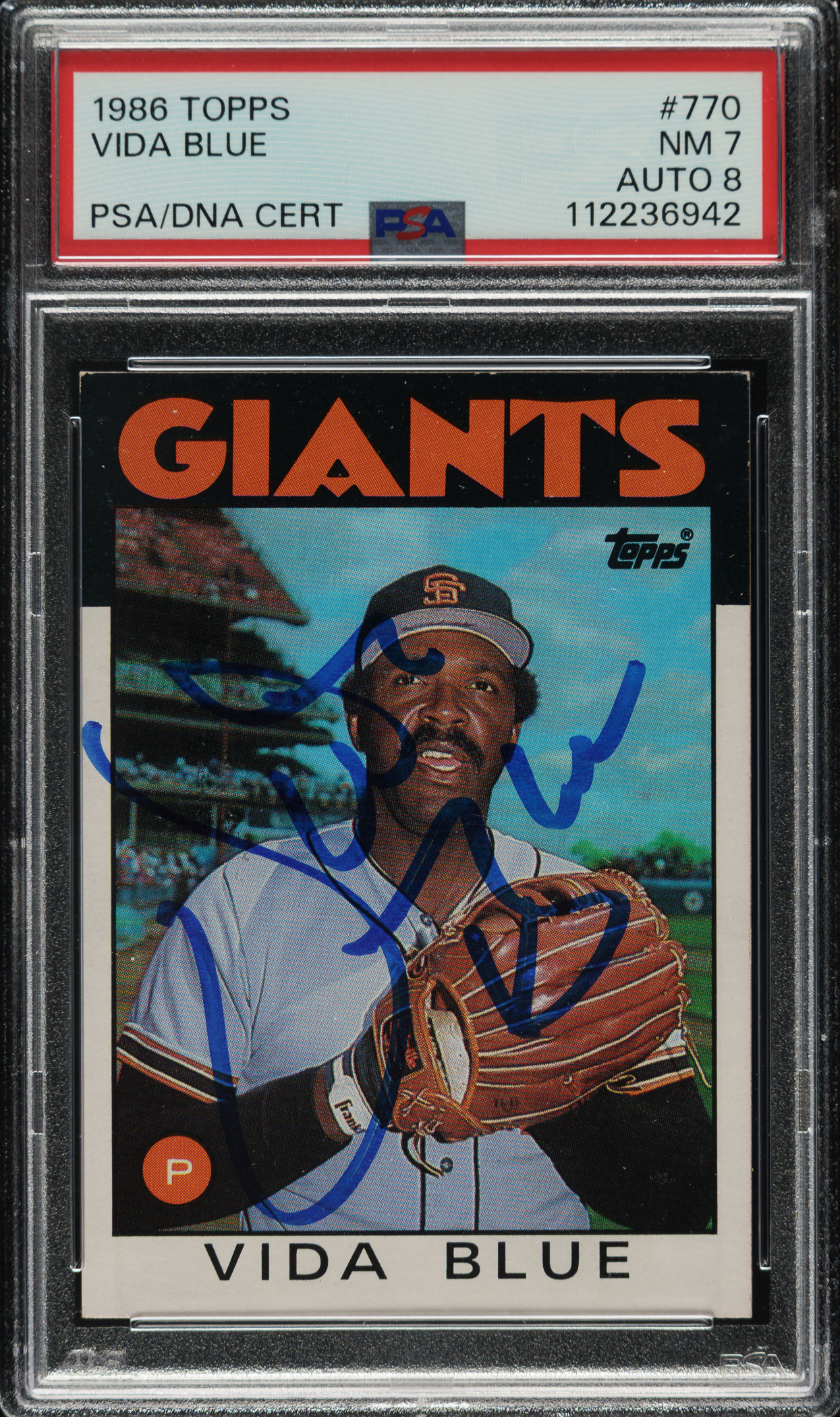 PSA/DNA has encapsulated the card, grading the signature NM-MT 8 and the card NM 7. San Francisco Giants.