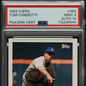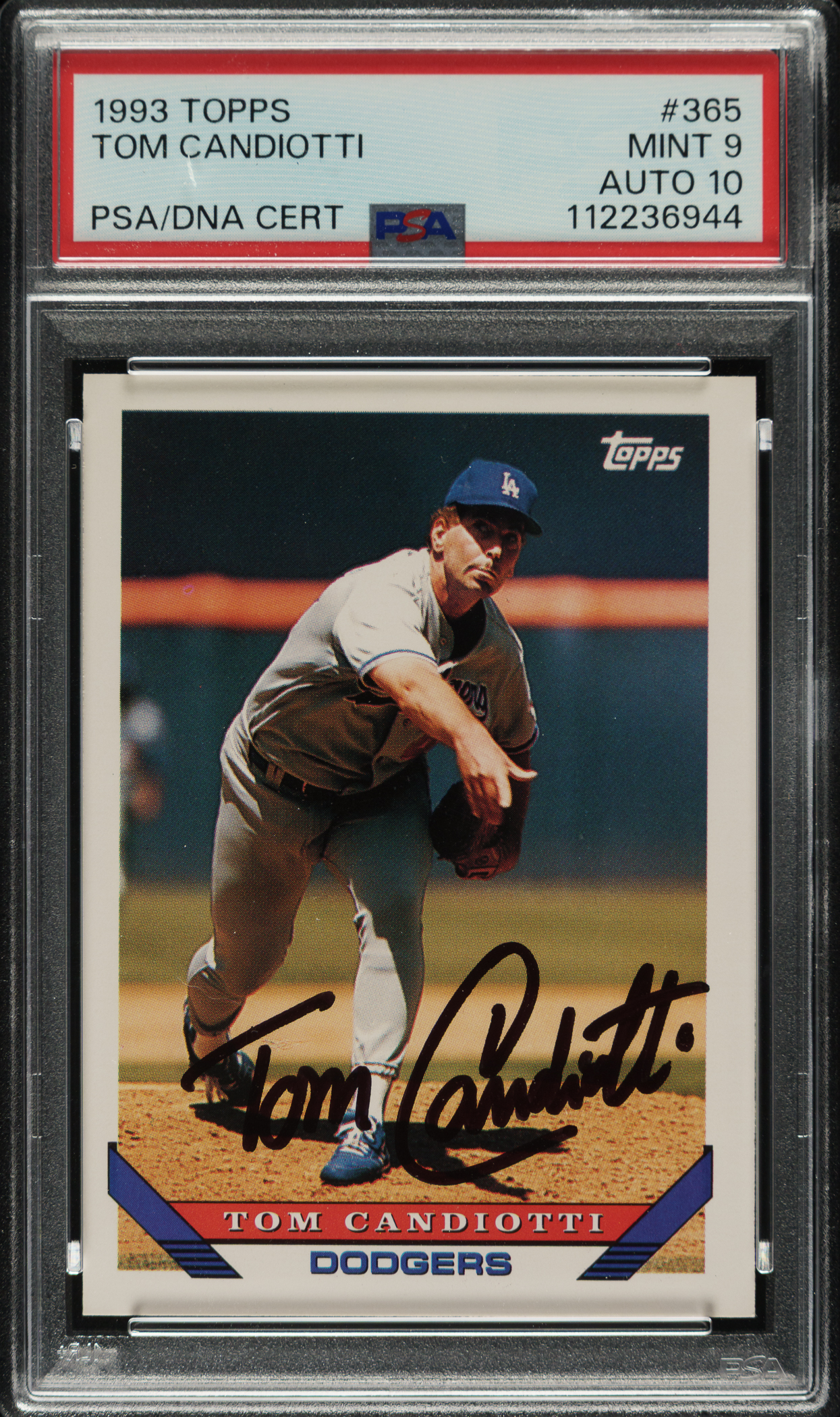 PSA/DNA has encapsulated the card, grading the signature GEM MINT 10 and the card MINT 9. Los Angeles Dodgers.
