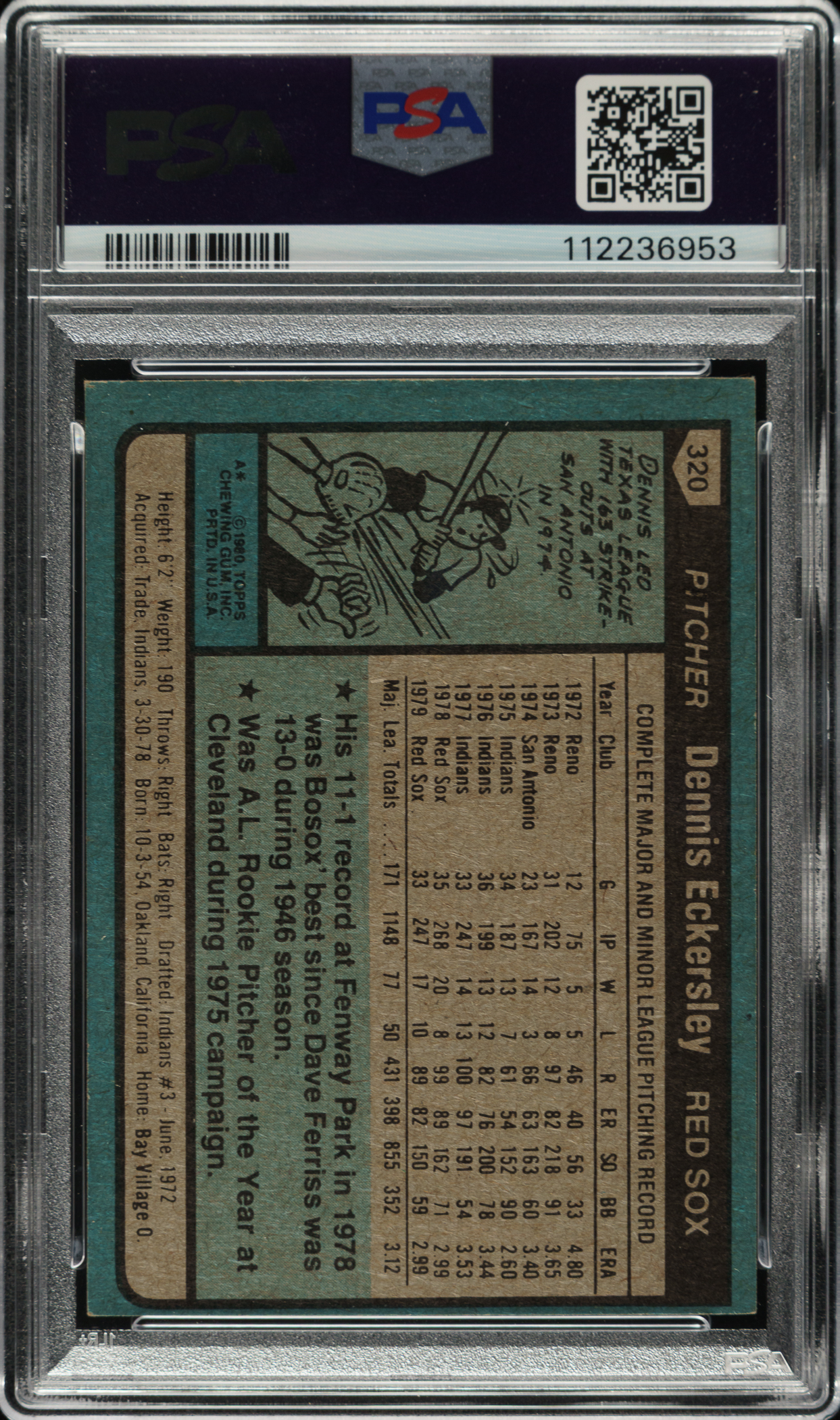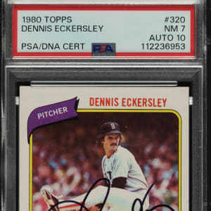 PSA/DNA has encapsulated the card, grading the signature GEM MINT 10 and the card NM 7. Boston Red Sox Hall of Famer Dennis Eckersley.