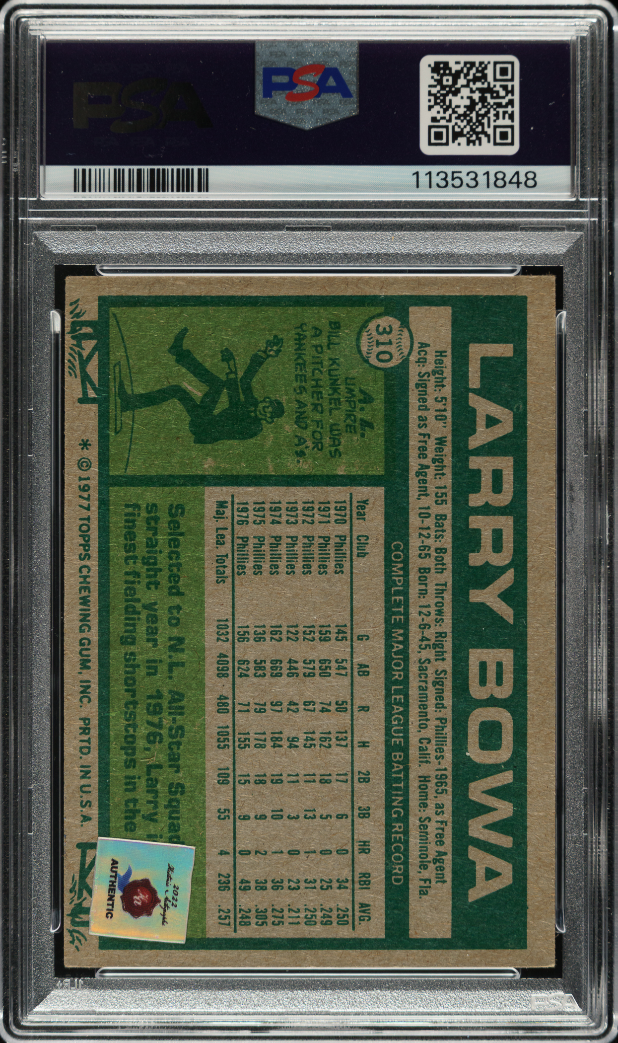 PSA/DNA has encapsulated the card, grading the signature GEM MINT 10 and the card VG 3. Philadelphia Phillies.