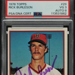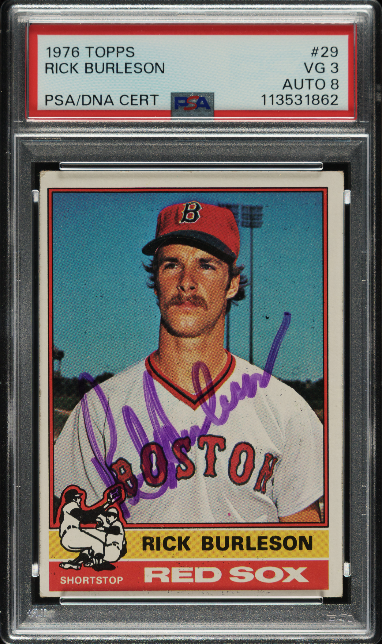 PSA/DNA has encapsulated the card, grading the signature NM-MT 8 and the card VG 3. Boston Red Sox.