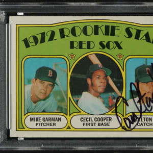 PSA/DNA has encapsulated the card, grading the signature NM-MT 8 and the card VG-EX 4. Boston Red Sox Hall of Famer Carlton Fisk.