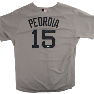 Boston Red Sox Dustin Pedroia signed jersey. Basic certification from James Spence/JSA.