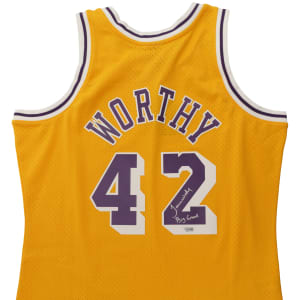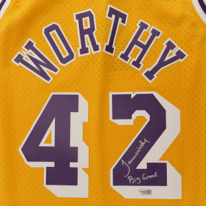 Los Angeles Lakers basketball Hall of Famer James Worthy signed jersey. Fanatics certification sticker is affixed to the jersey.