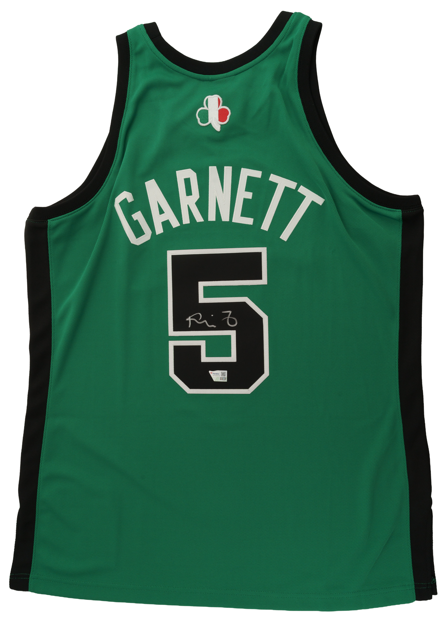 Boston Celtics basketball Hall of Famer Kevin Garnett signed jersey. Fanatics certification sticker is affixed to the jersey.