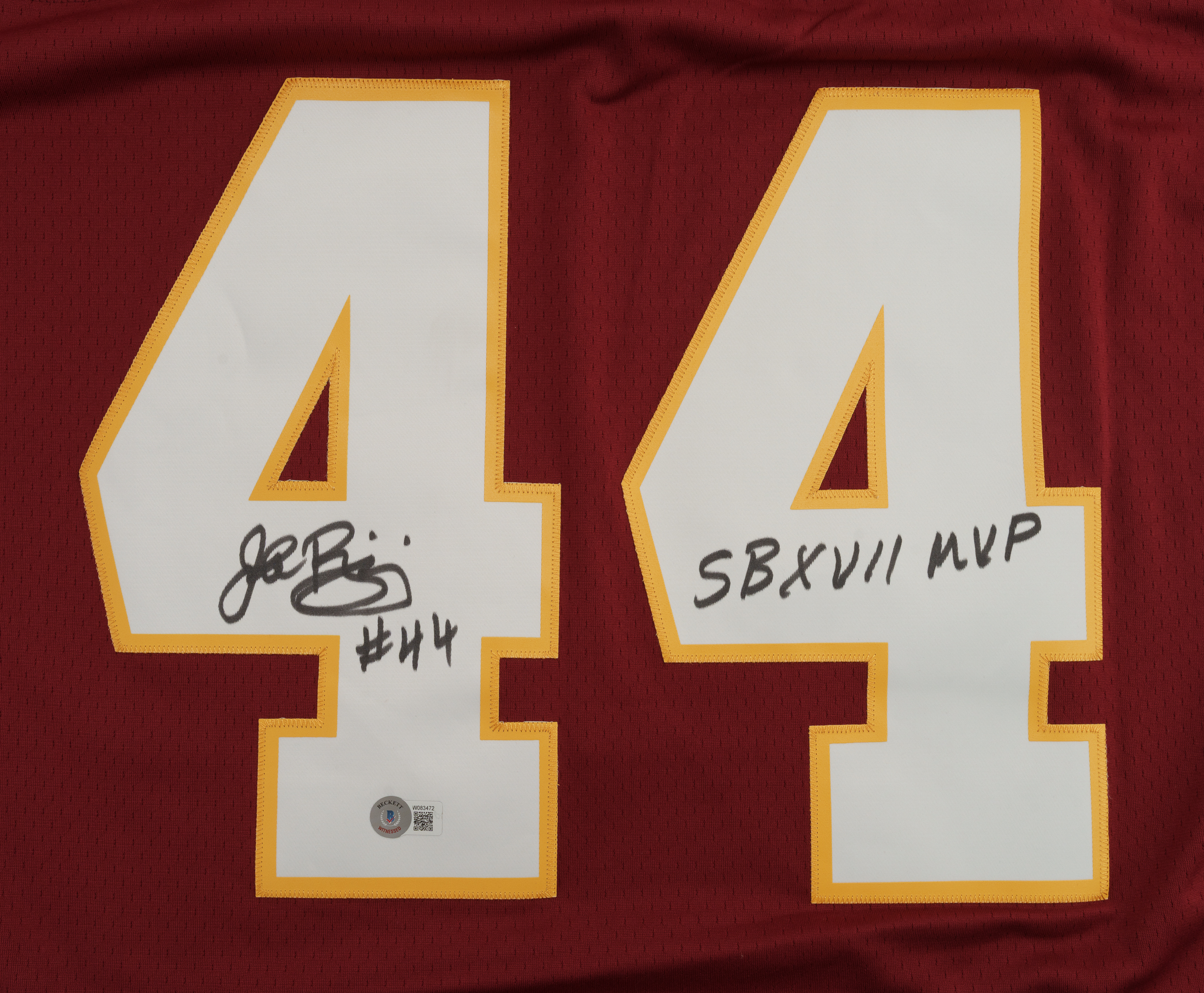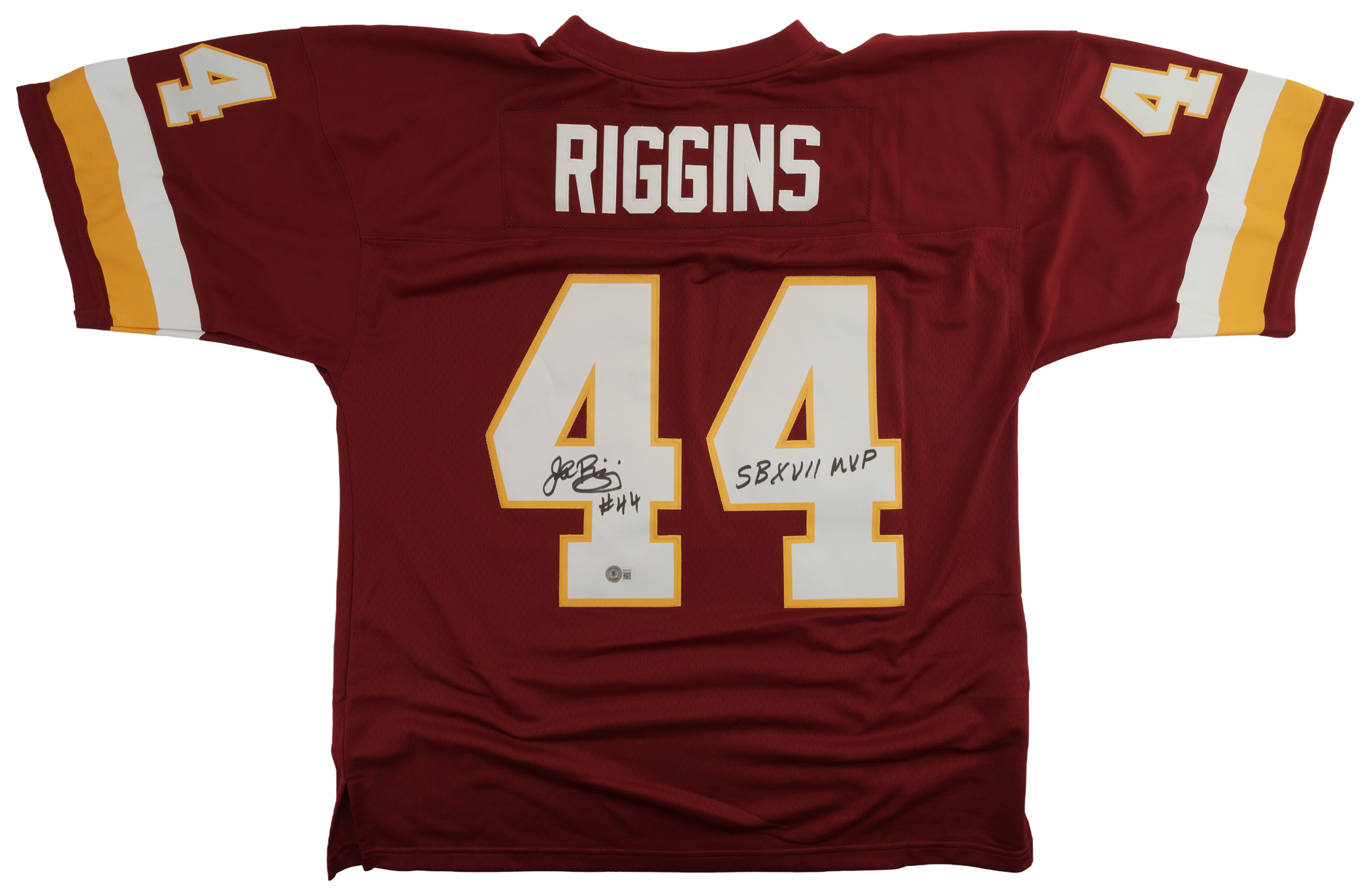 Washington Redskins football Hall of Famer John Riggins signed jersey. Beckett certification sticker is affixed to the jersey.