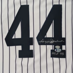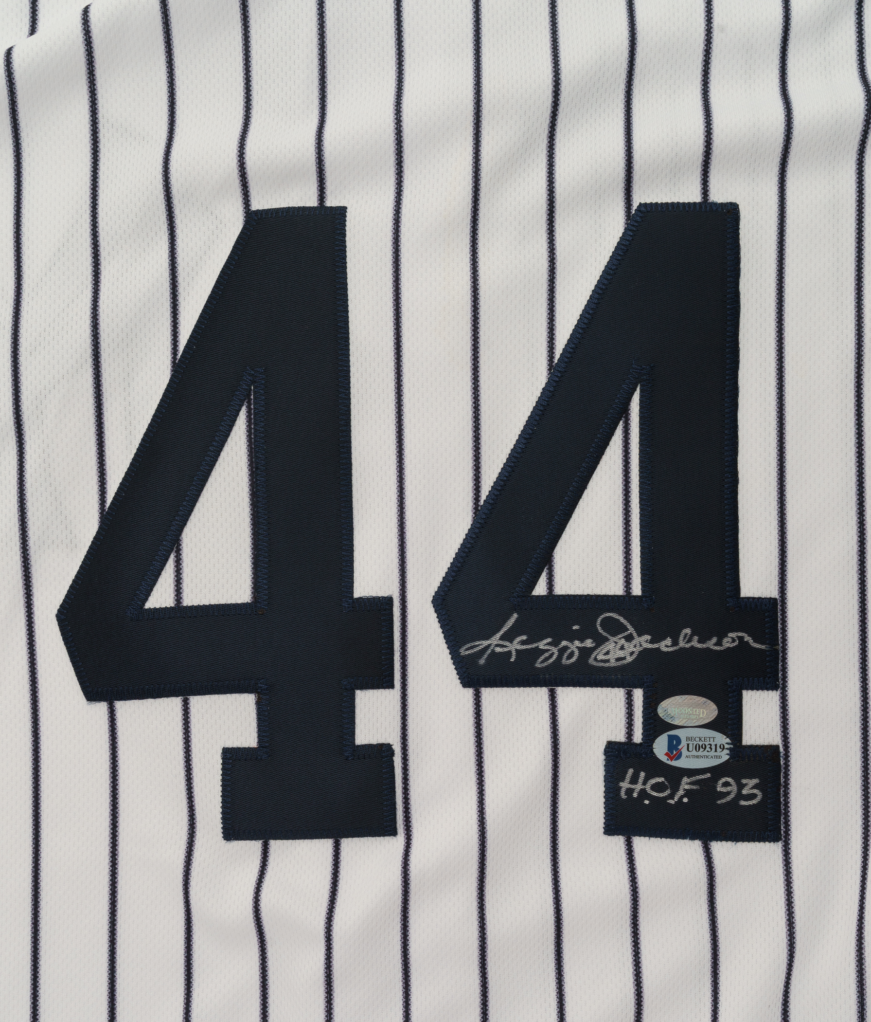 New York Yankees Hall of Famer Reggie Jackson signed jersey. Beckett certification sticker is affixed to the jersey.