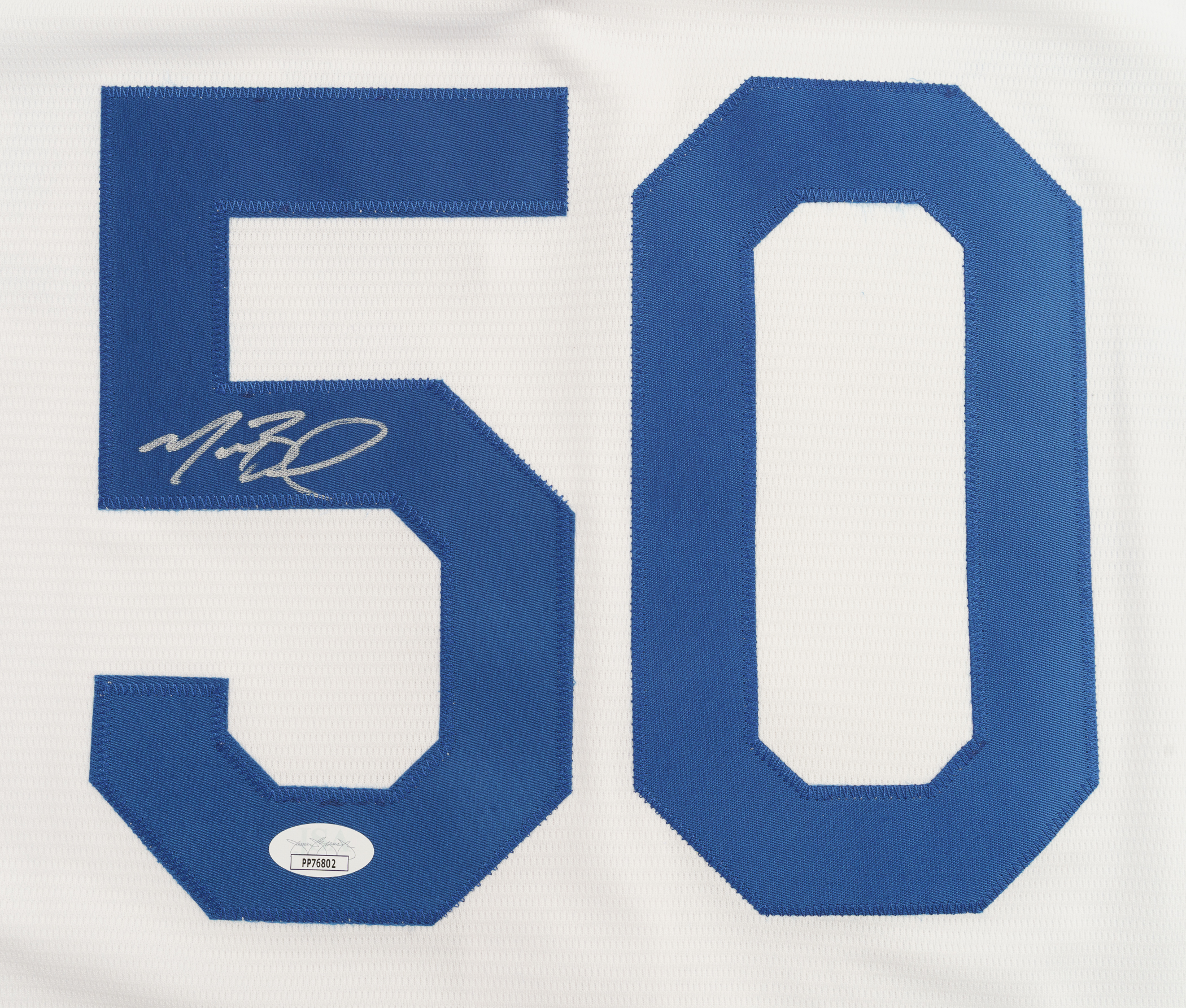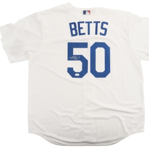 Los Angeles Dodgers Mookie Betts signed jersey. Basic certification from James Spence/JSA.