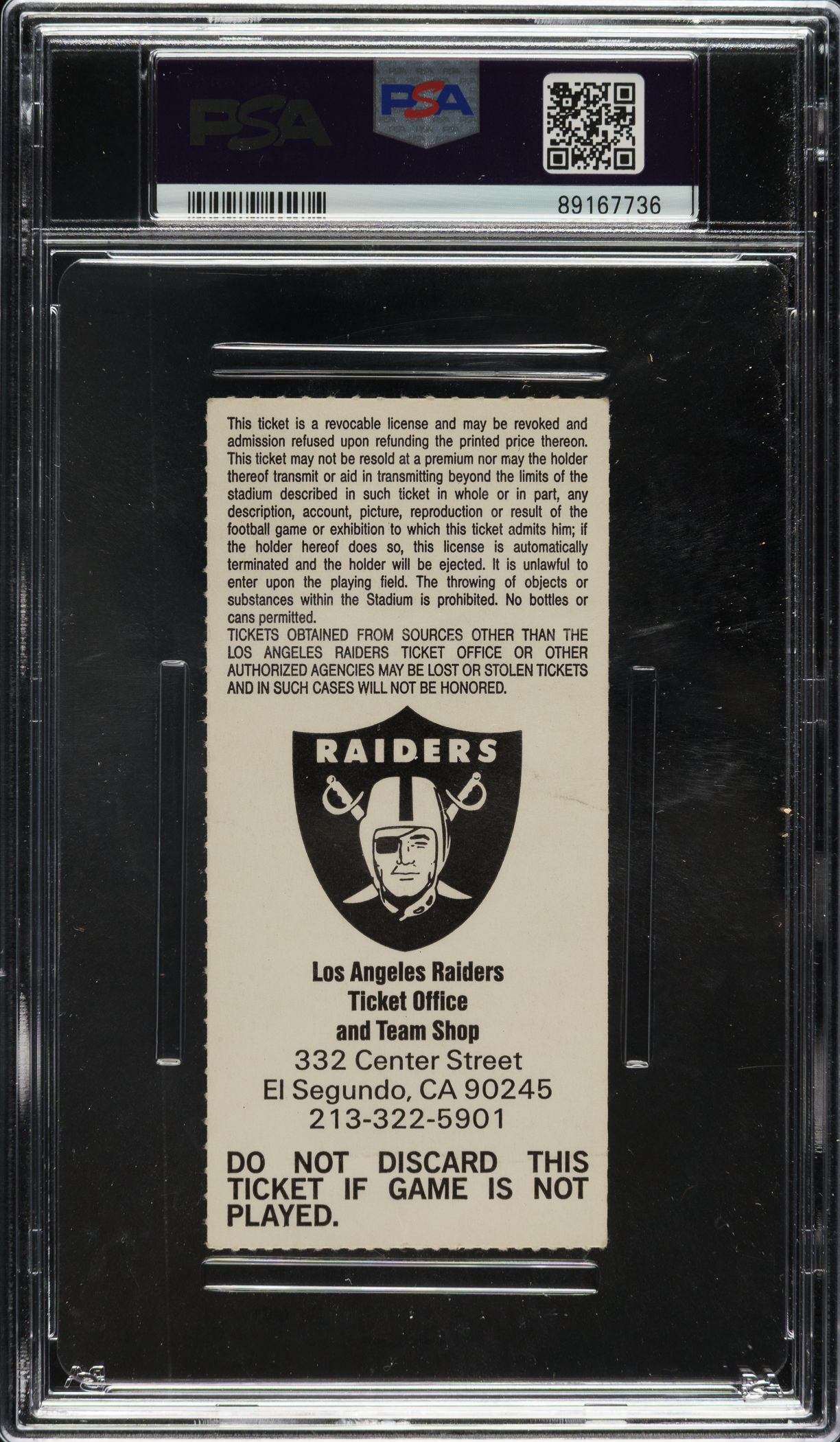 Graded GOOD 2 by PSA. Los Angeles Raiders vs. Cincinnati Bengals.