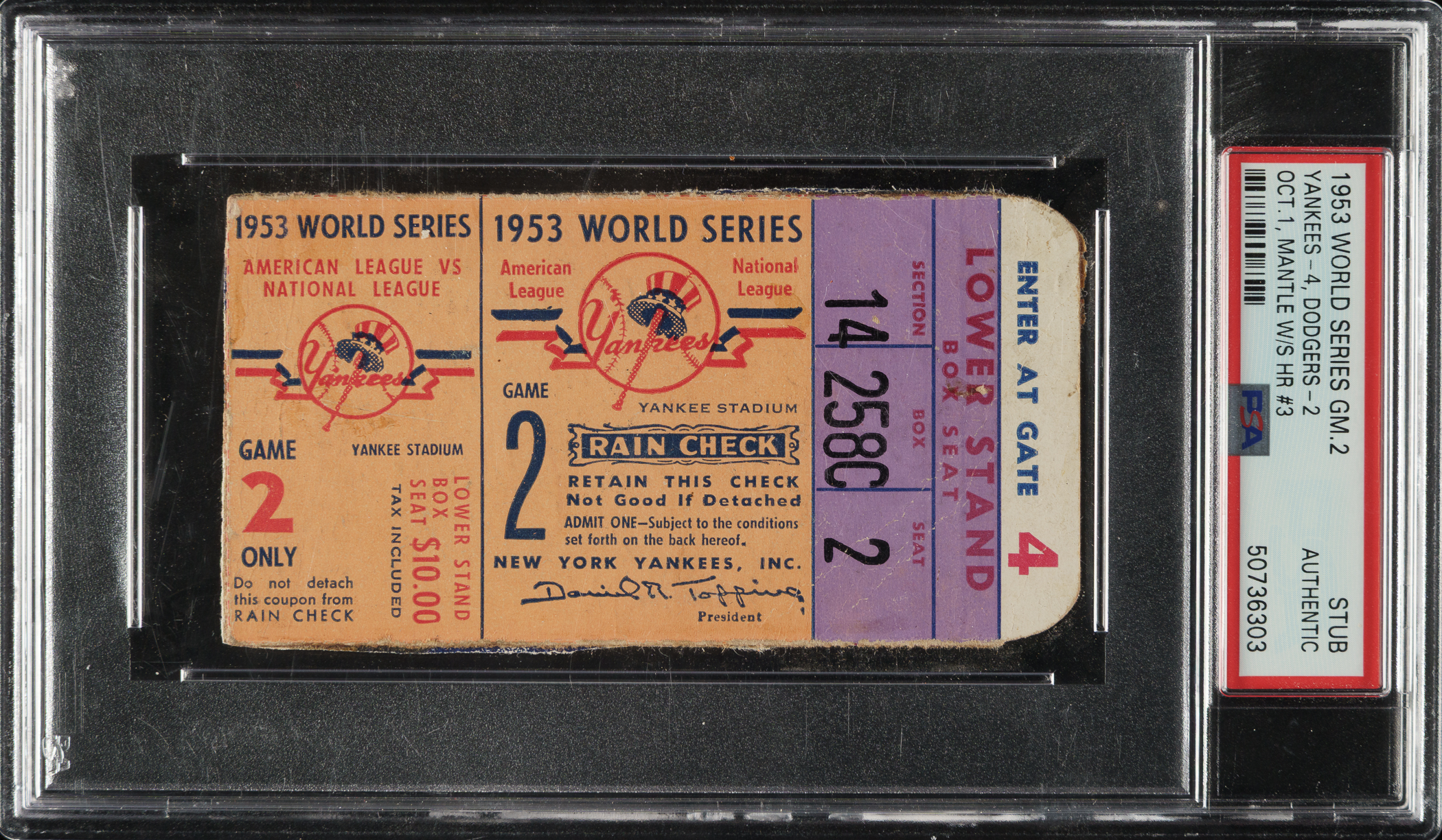 1953 New York Yankees (vs. Brooklyn Dodgers) World Series Game 2 Ticket Stub PSA Authentic - Mickey Mantle Home Run #3