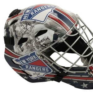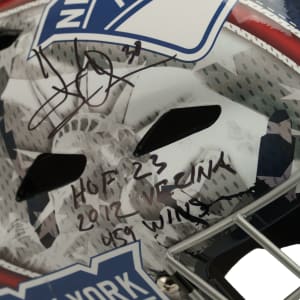 New York Rangers hockey Hall of Famer Henrik Lundqvist signed limited edition helmet. This helmet is numbered 22 out of 30. Fanatics certification sticker is affixed to the helmet. The size/weight of this item requires that there will be an additional shipping charge for this lot.