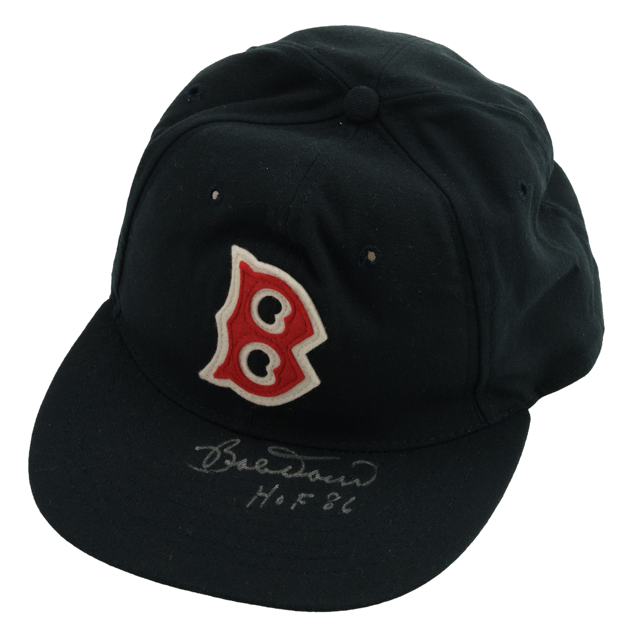 Boston Red Sox Hall of Famer Bobby Doerr signed cap. Beckett certification sticker is affixed to the cap. The size/weight of this item requires that there will be an additional shipping charge for this lot.
